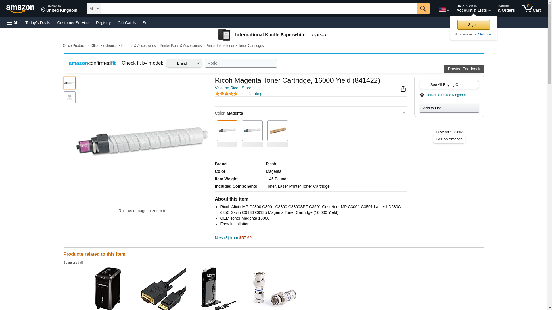 | Feature | Ricoh Aficio MP C2800 C3001 C3300 C3300SPF C3501 Gestetner MP C3001 C3501 Lanier LD630C 635C Savin C9130 C9135 Magenta Toner Cartridge (16 000 Yield) |