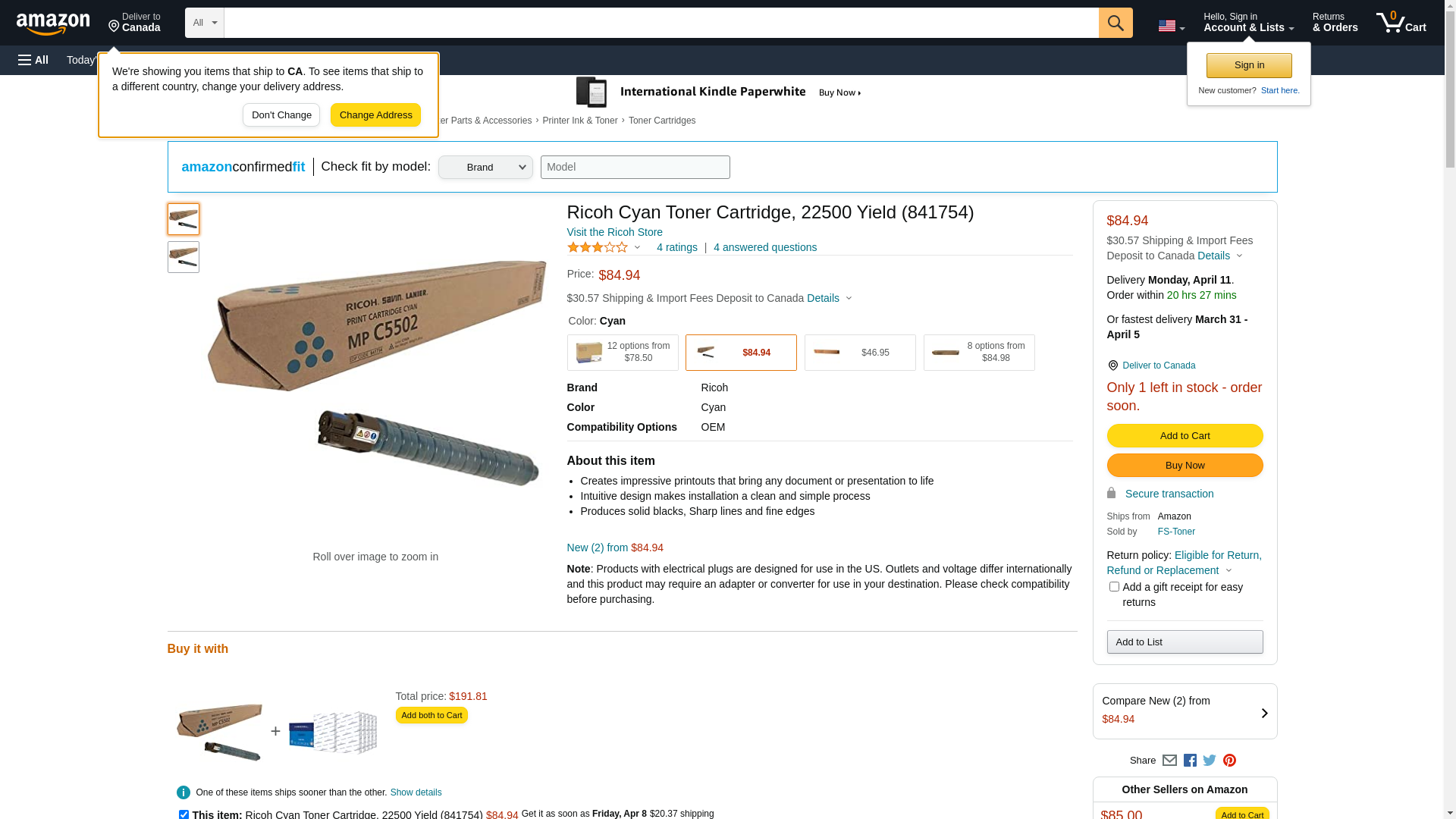| Feature | Ricoh Aficio MP C4502 C5502 C5502A Lanier MP C4502 C5502 C5502A Savin MP C4502 C5502 C5502A Cyan Toner Cartridge (22 500 Yield) |