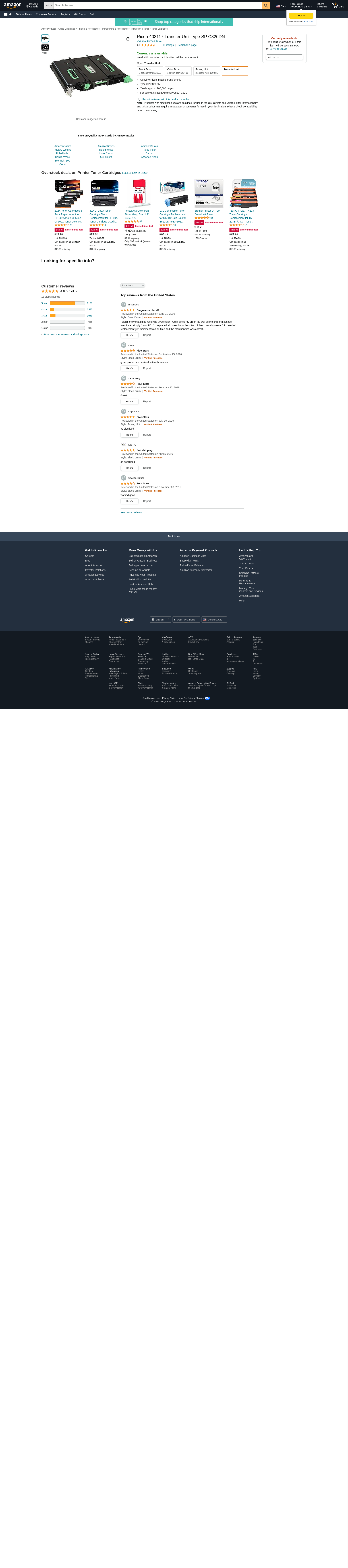Ricoh Corp Transfer Unit SP C820DN