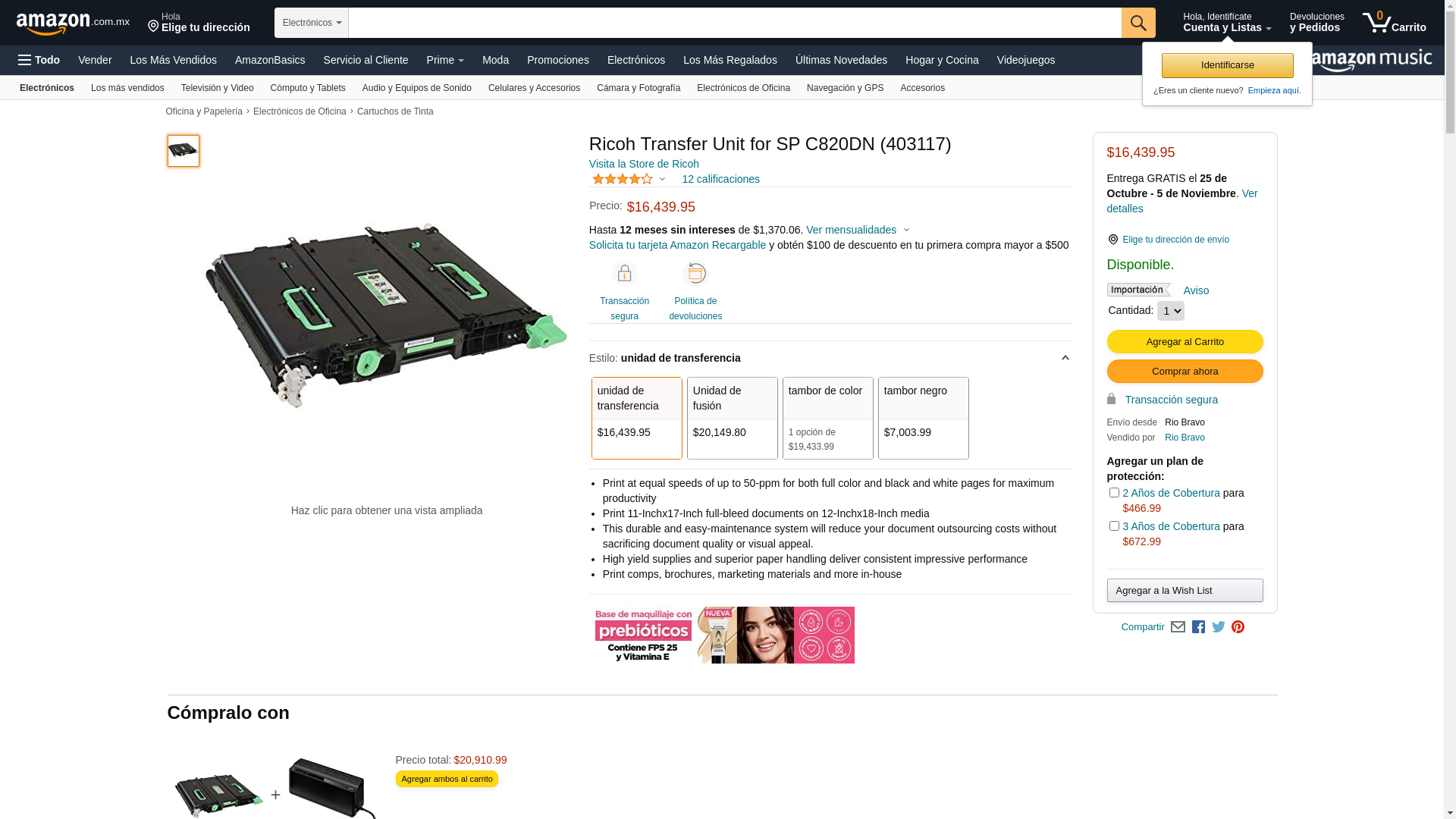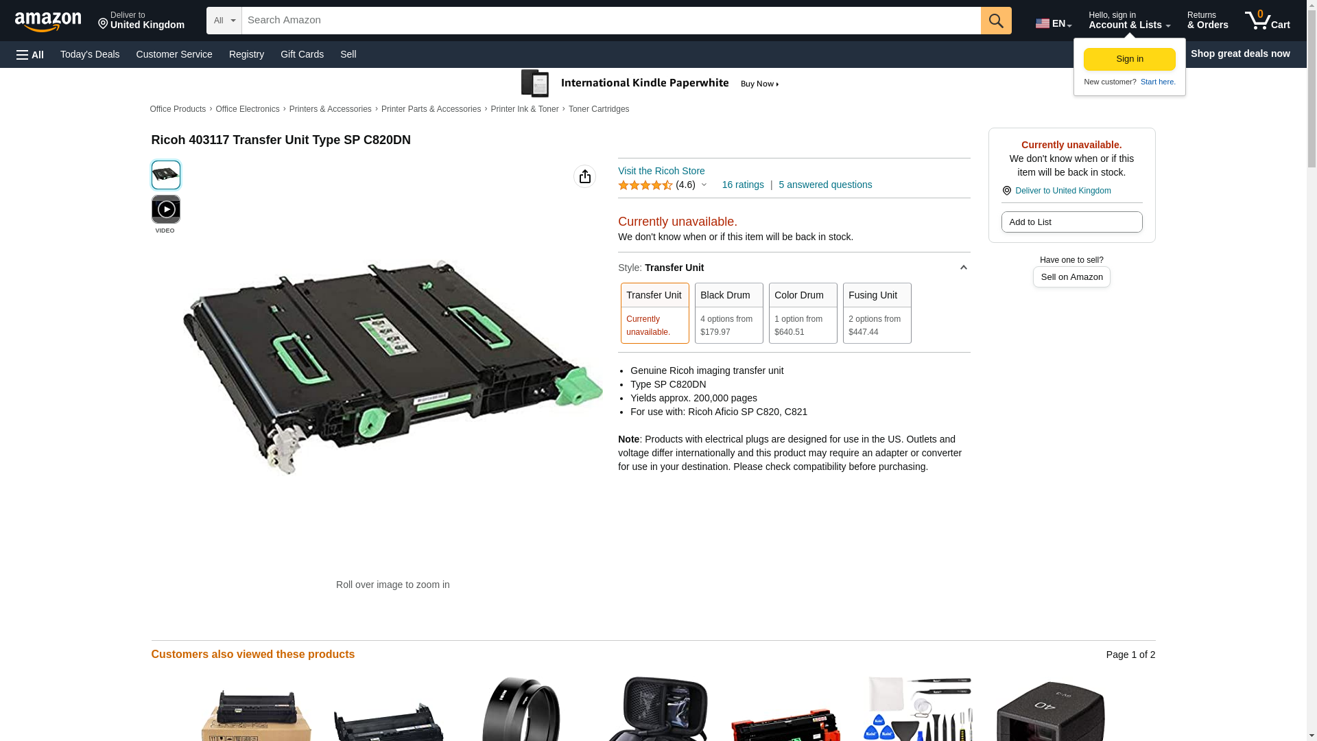 Ricoh Transfer Unit for SP C820DN (403117). Print at equal speeds of up to 50-ppm for both full color and black and w...