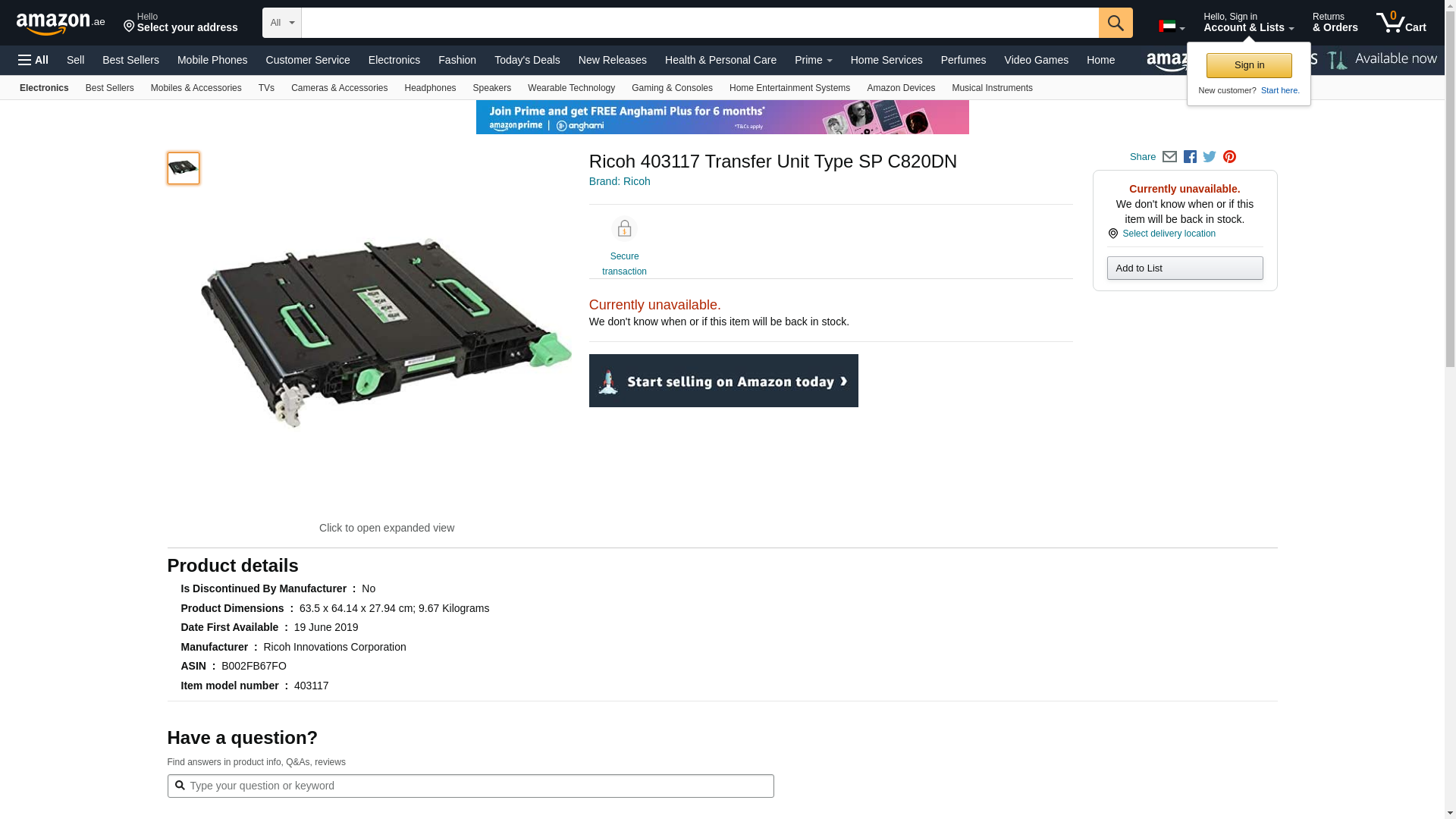 Sparepart: Ricoh Transfer Unit SP C820DN-C821DN, 403117 (SP C820DN-C821DN)