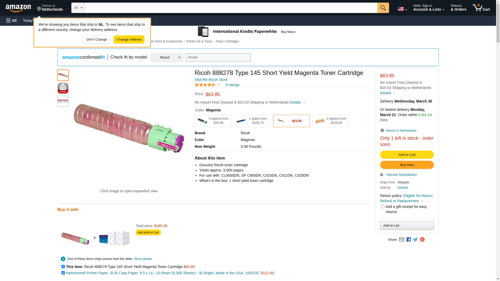 Ricoh 888278 Type 145 Short Yield Magenta Toner Cartridge
