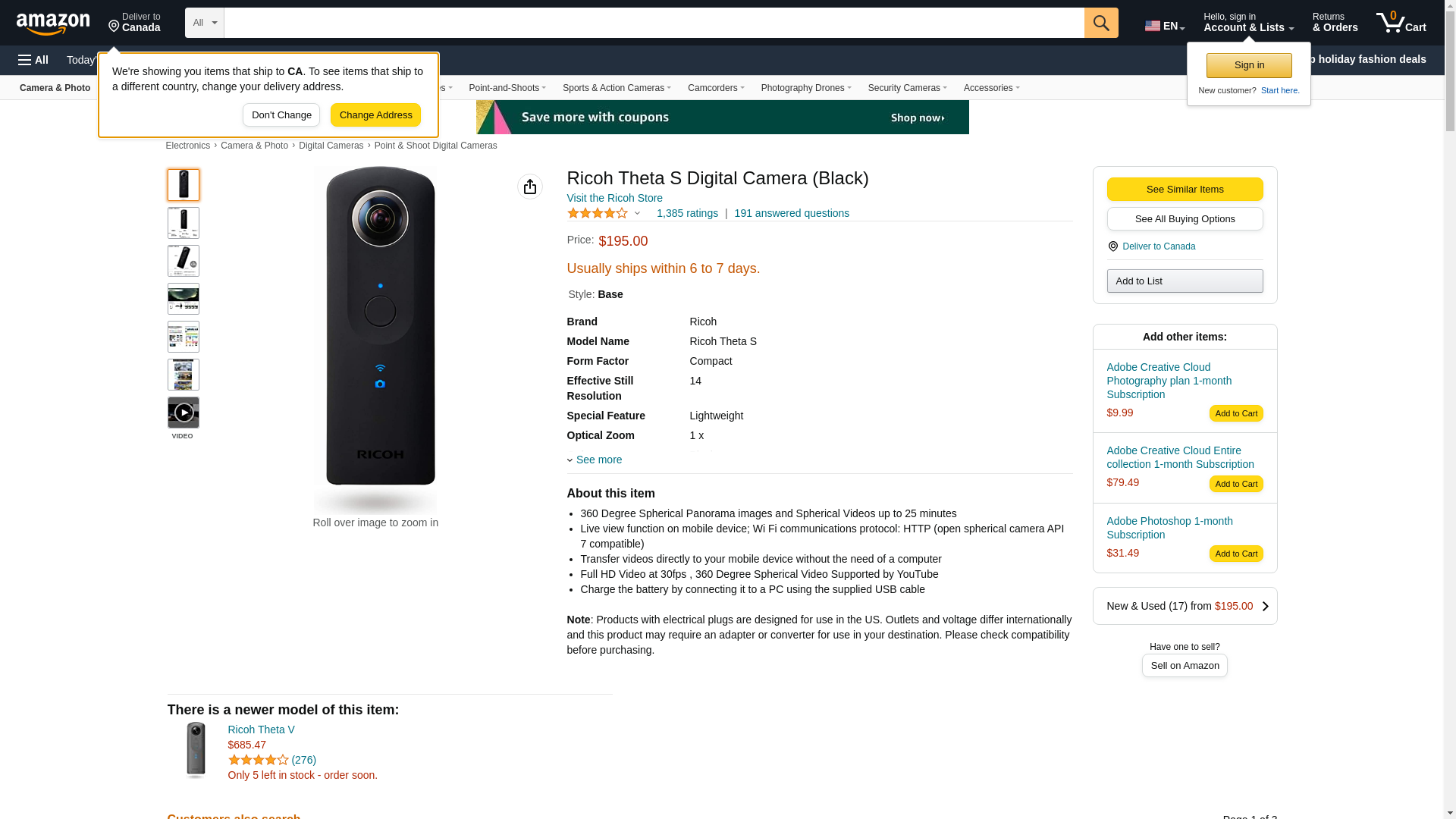 Ricoh Theta S Digital Camera (Black)