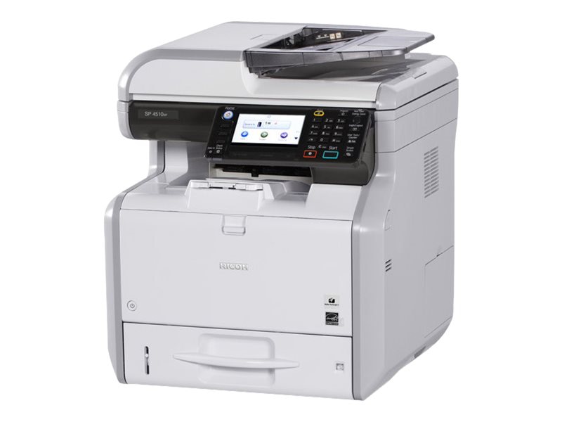 | Feature | Tackle big document tasks in small spaces. Help your workers manage and share information at high speed with the RICOH SP 4510SF, a compact monochrome MFP that copies, prints, scans and faxes. *** Language Emulation: Direct PDF, PCL 5e, PCL 6, PostScript 3 |