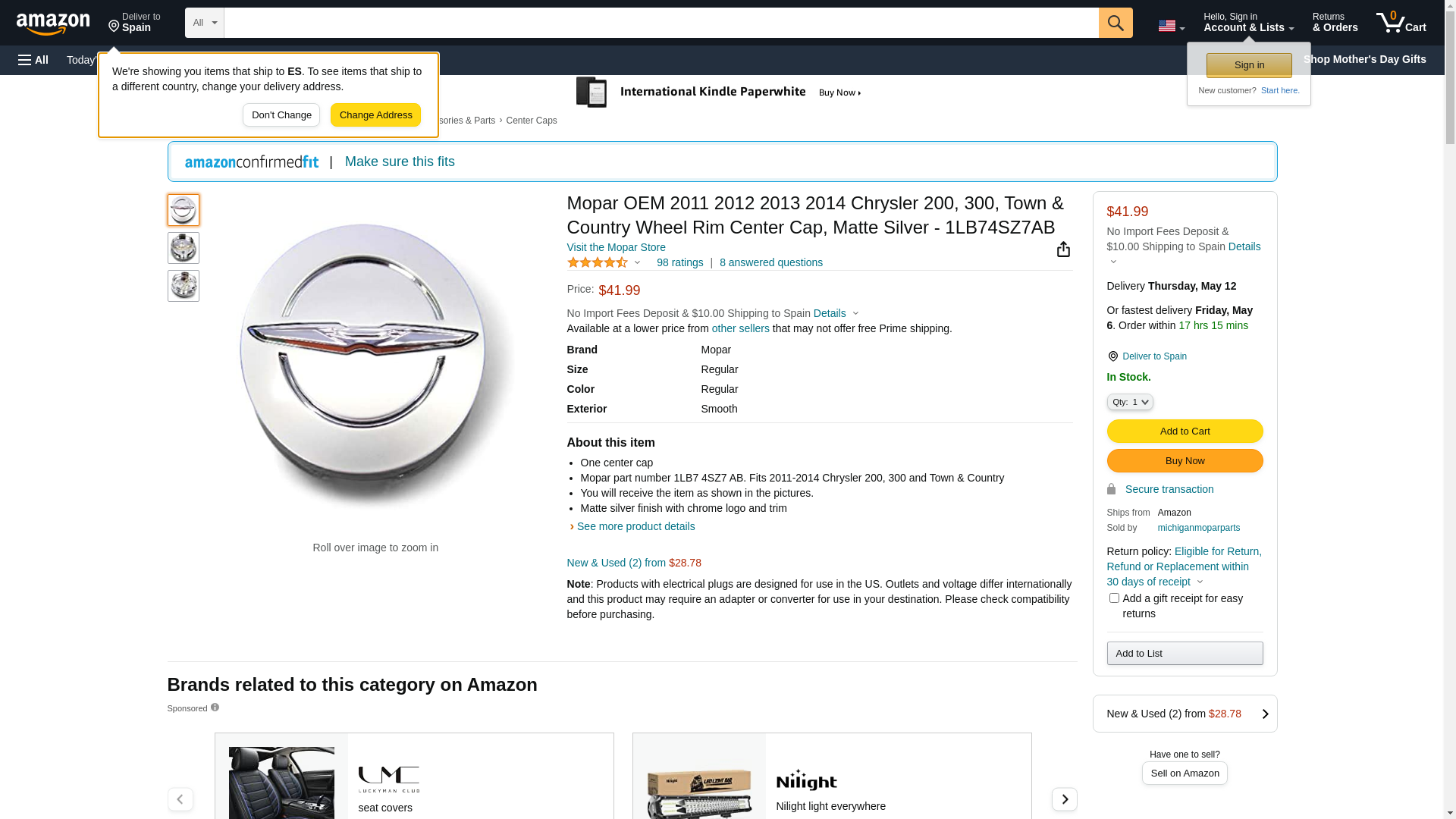 Mopar OEM 2011 2012 2013 2014 Chrysler 200, 300, Town & Country Wheel Rim Center Cap, Matte Silver - 1LB74SZ7AB