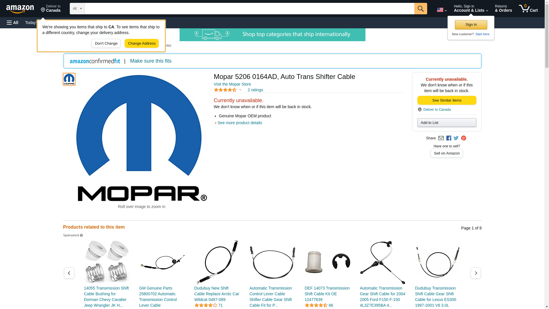 Mopar 5206 0164AD, Auto Trans Shifter Cable