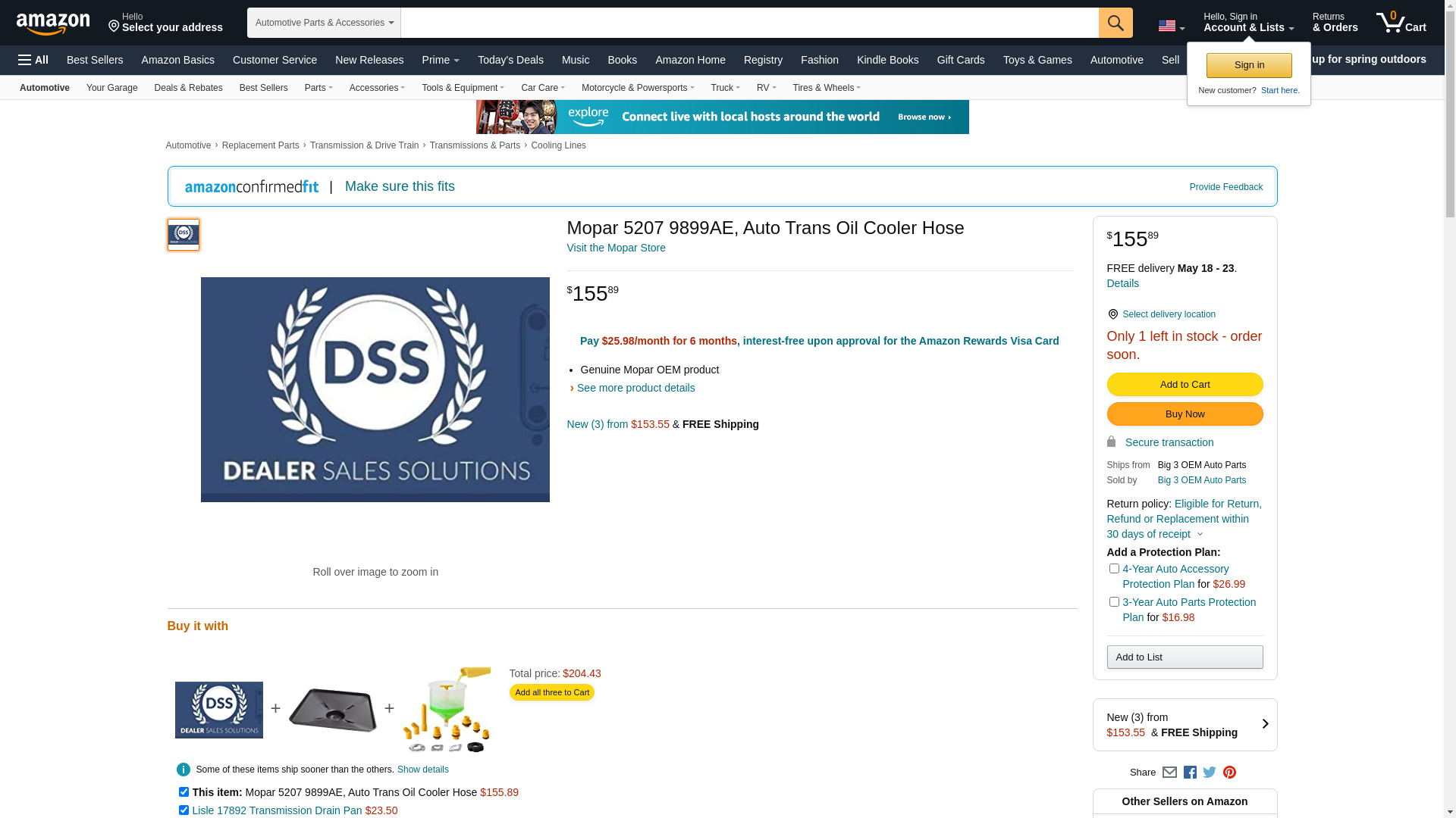 Mopar 5207 9899AE, Auto Trans Oil Cooler Hose
