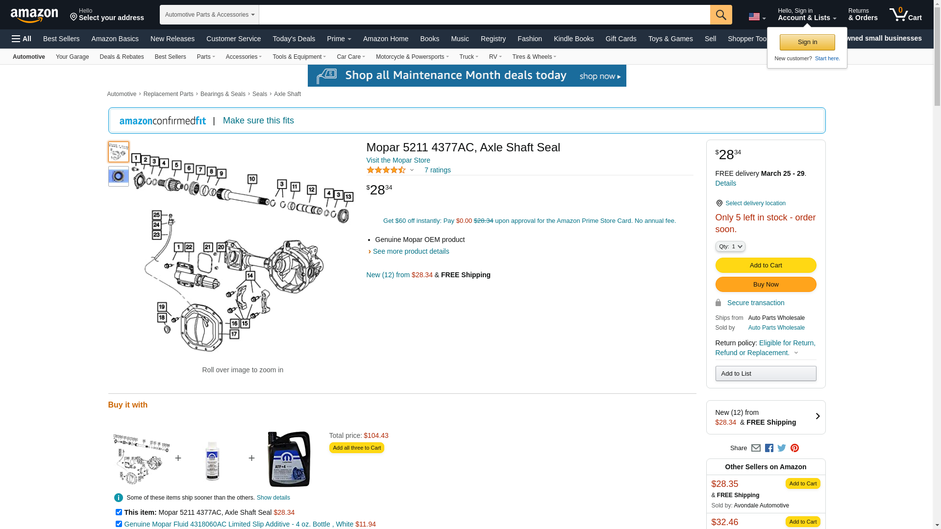 ![]() StockWise Auto | MOP-52114377AC | 1 | 1 | 1 @ $23.94 | |