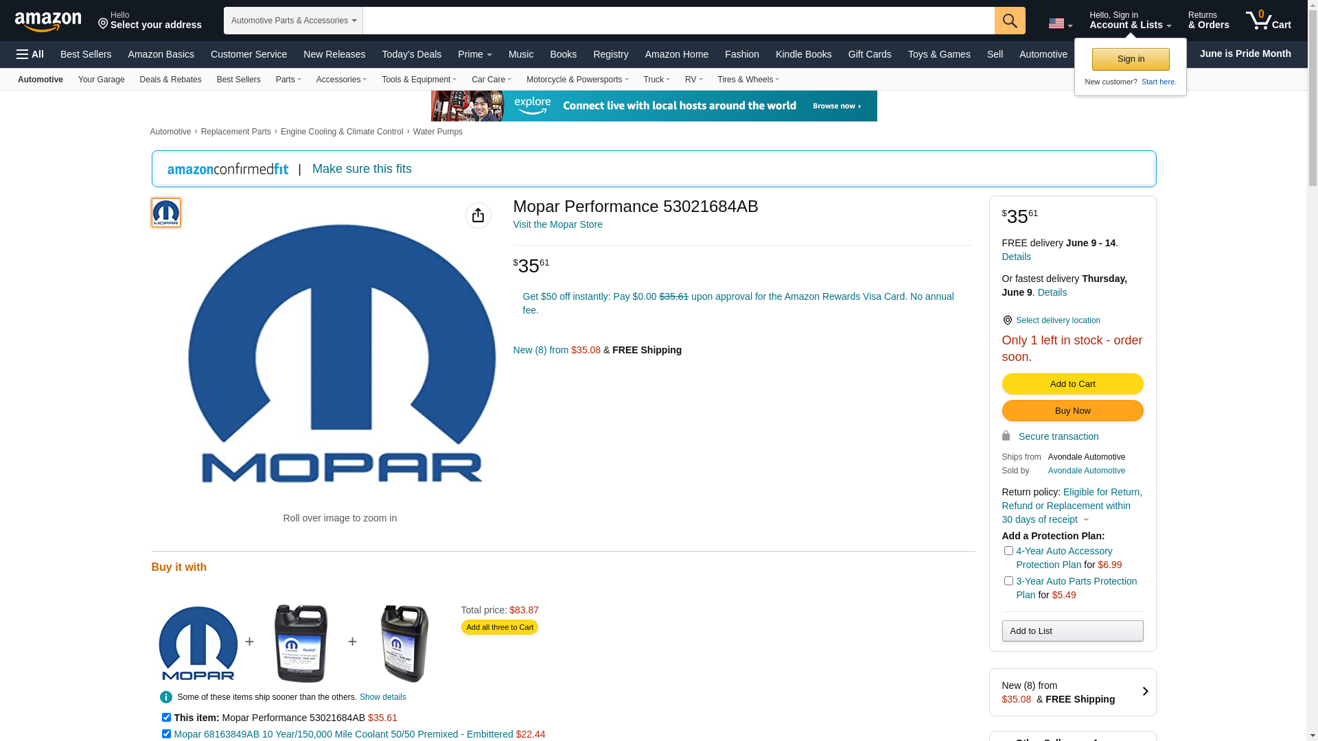 ![]() StockWise Auto | MR-53021684AB | 1 | 1 | 1 @ $14.44 | |
