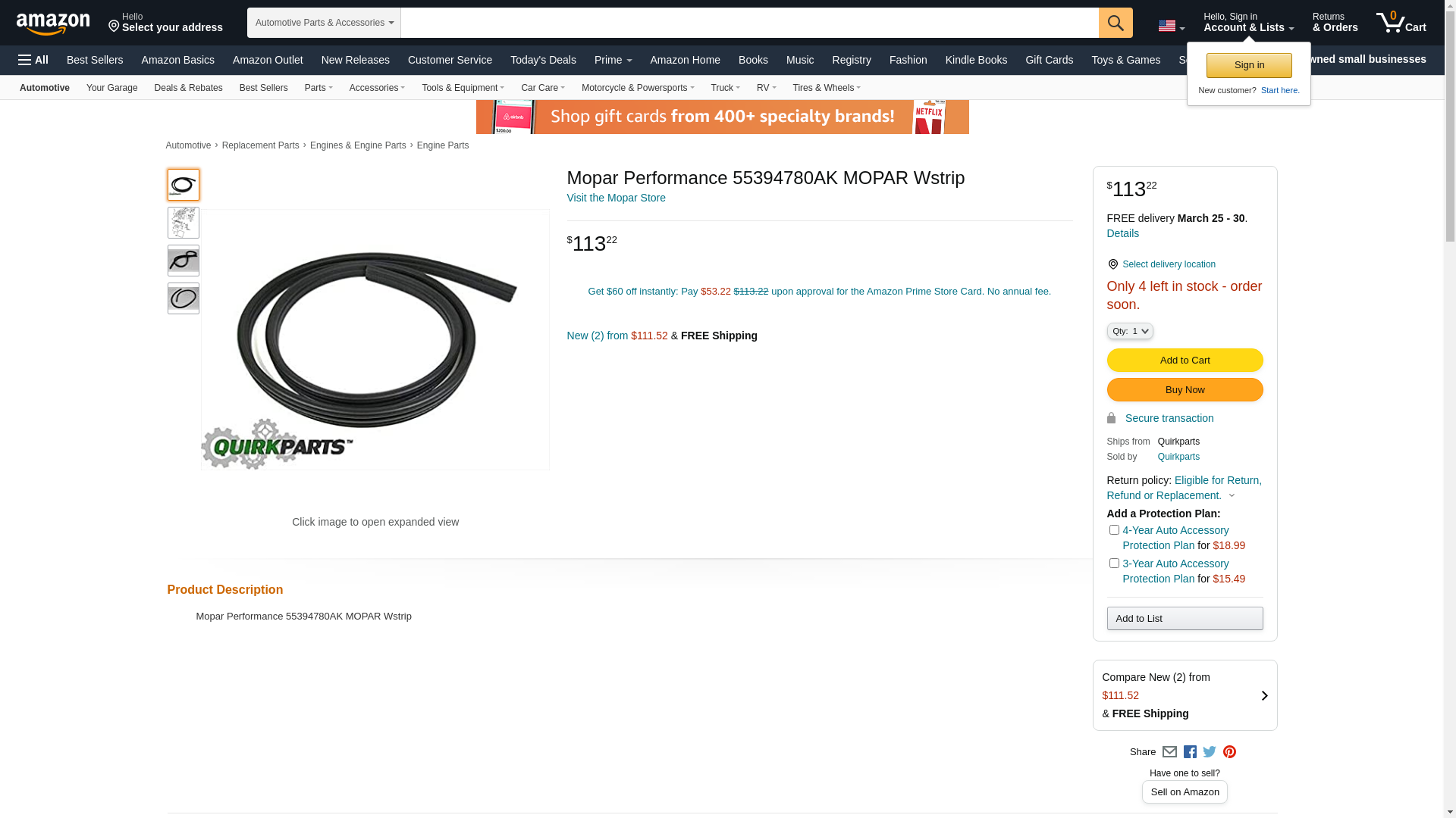 Mopar Performance 55394780AK MOPAR Wstrip