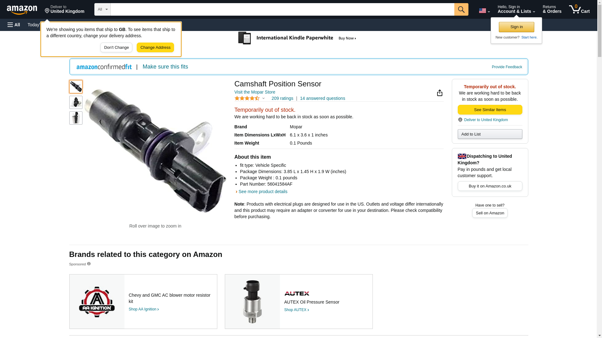 NEW GENUINE OEM MOPAR CAMSHAFT POSITION SENSOR PART # 56041584AF FITS MOST 3.7L, 4.7L AND 5.7L GASOLINE ENGINES, PLEASE SEND US YOUR VIN NUMBER FOR APPLICATION VERIFICATION FITS 2003 TO 2007 DODGE RAM 1500 & 2500 EQUIPPED WITH 3.7L, 4.7L & 5.7L GASOLINE ENGINES FITS 1999 TO 2007 JEEP GRAND CHEROKEE EQUIPPED WITH 3.7L, 4.7L & 5.7L GASOLINES ENGINES FITS 2005 TO 2007 CHRYSLER 300 EQUIPPED WITH 5.7L GASOLINE ENGINES FITS 2005 TO 2008 DODGE CHARGER AND MAGNUM EQUIPPED WITH 5.7L GASOLINE ENGINES FITS 2006 TO 2007 JEEP COMMANDER EQUIPPED WITH 3.7L, 4.7L & 5.7L GASOLINE ENGINES FITS 2002 TO 2007 JEEP LIBERTY EQUIPPED WITH 3.7L GASOLINES ENGINES FITS 2000 TO 2007 DODGE DAKOTA & DURANGO EQUIPPED WITH 3.7L, 4.7L & 5.7L GASOLINE ENGINES REPLACEMENT CAMSHAFT SENSOR. RESTORE THE ENGINE DRIVEABILITY OF YOUR VALUABLE CHRYSLER, DODGE & JEEP VEHICLE WITH THIS NEW OEM COMPONENT!!!! OEM QUALITY AND FIT!!!!! 12 MONTHS WARRANTY AT ANY CHRYSLER, DODGE & JEEP DEALER ACROSS THE U.S.!!!! IF YOUR UNSURE OF YOUR APPLICATION PLEASE SEND US YOUR VIN NUMBER FOR APPLICATION VERIFICATION!!!!