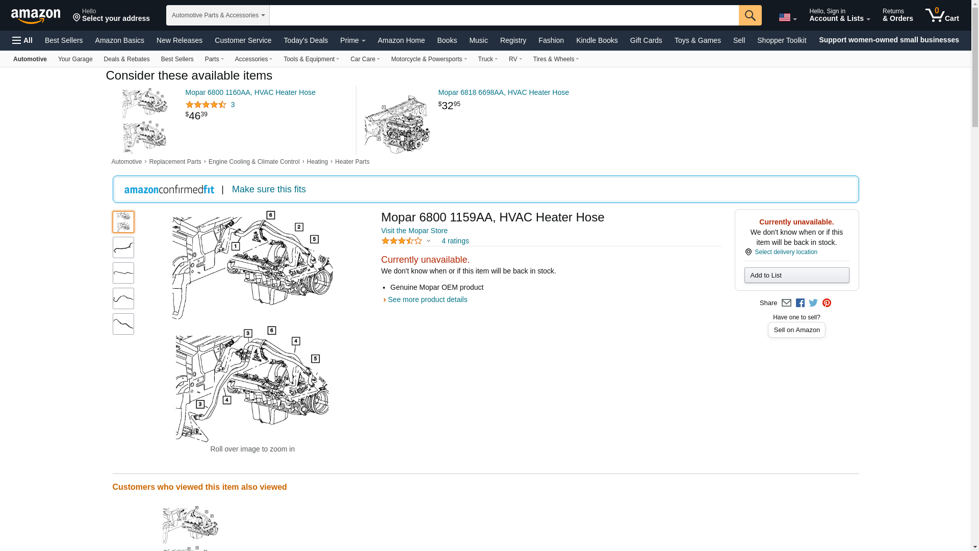 Mopar 6800 1159AA, HVAC Heater Hose