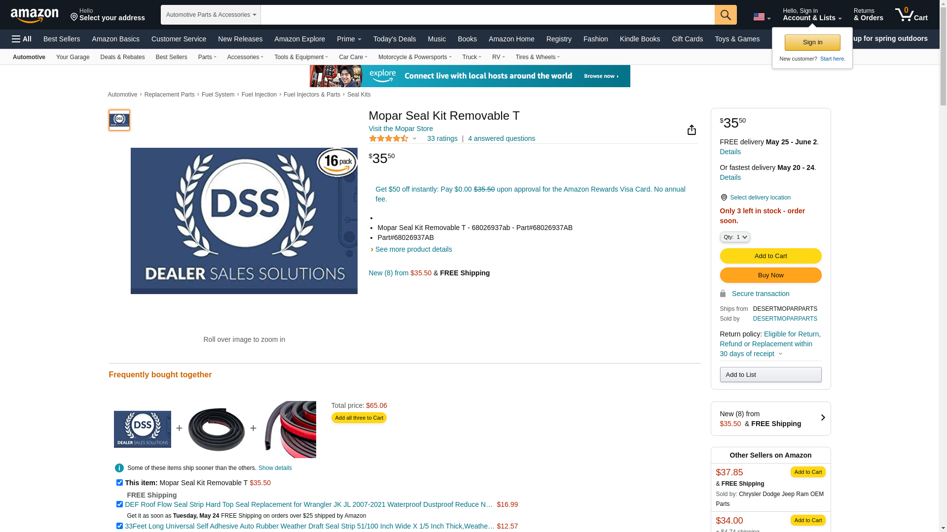 - Mopar Seal Kit Removable T - 68026937ab - Part#68026937AB