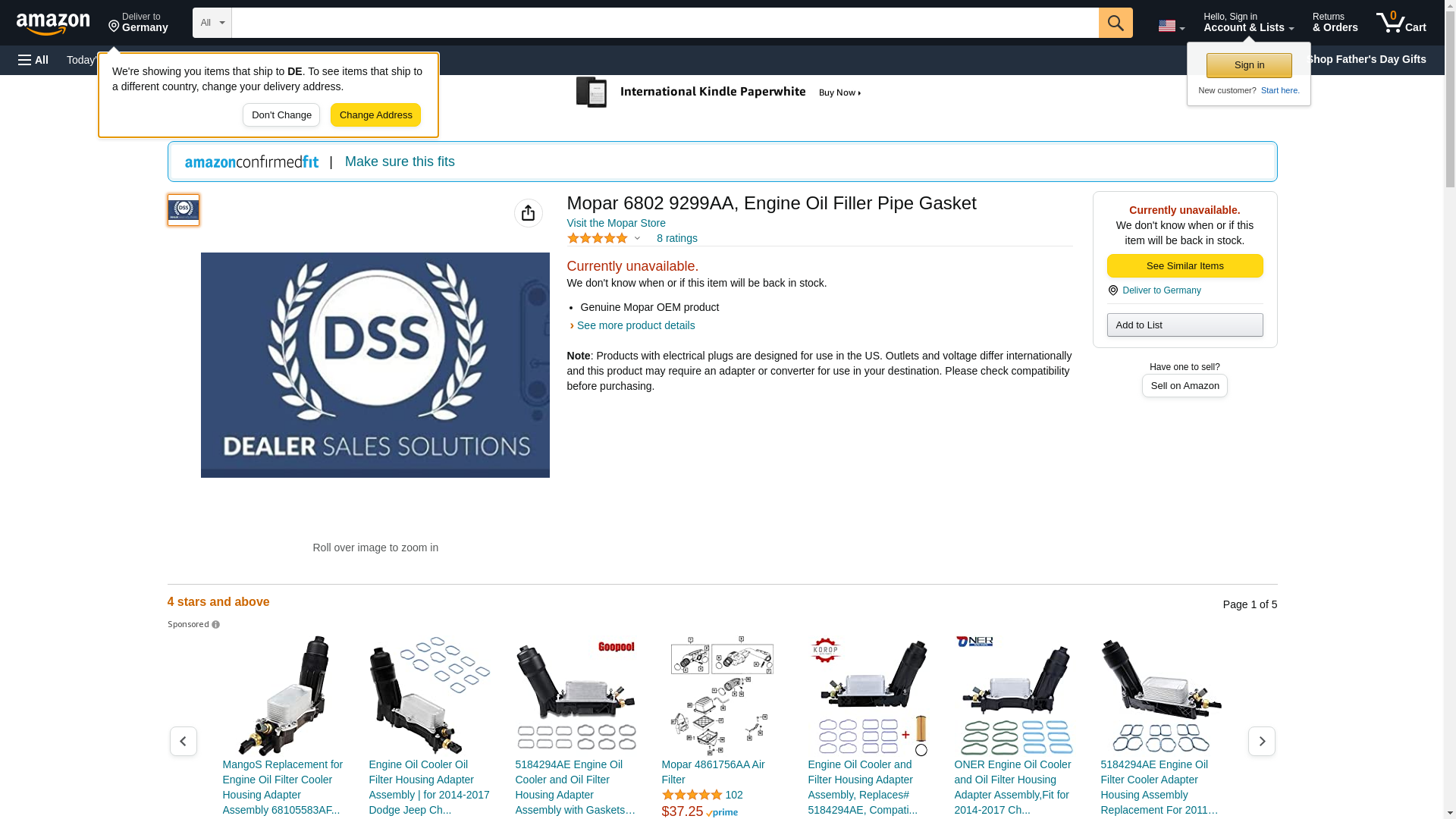 Mopar 6802 9299AA, Engine Oil Filler Pipe Gasket