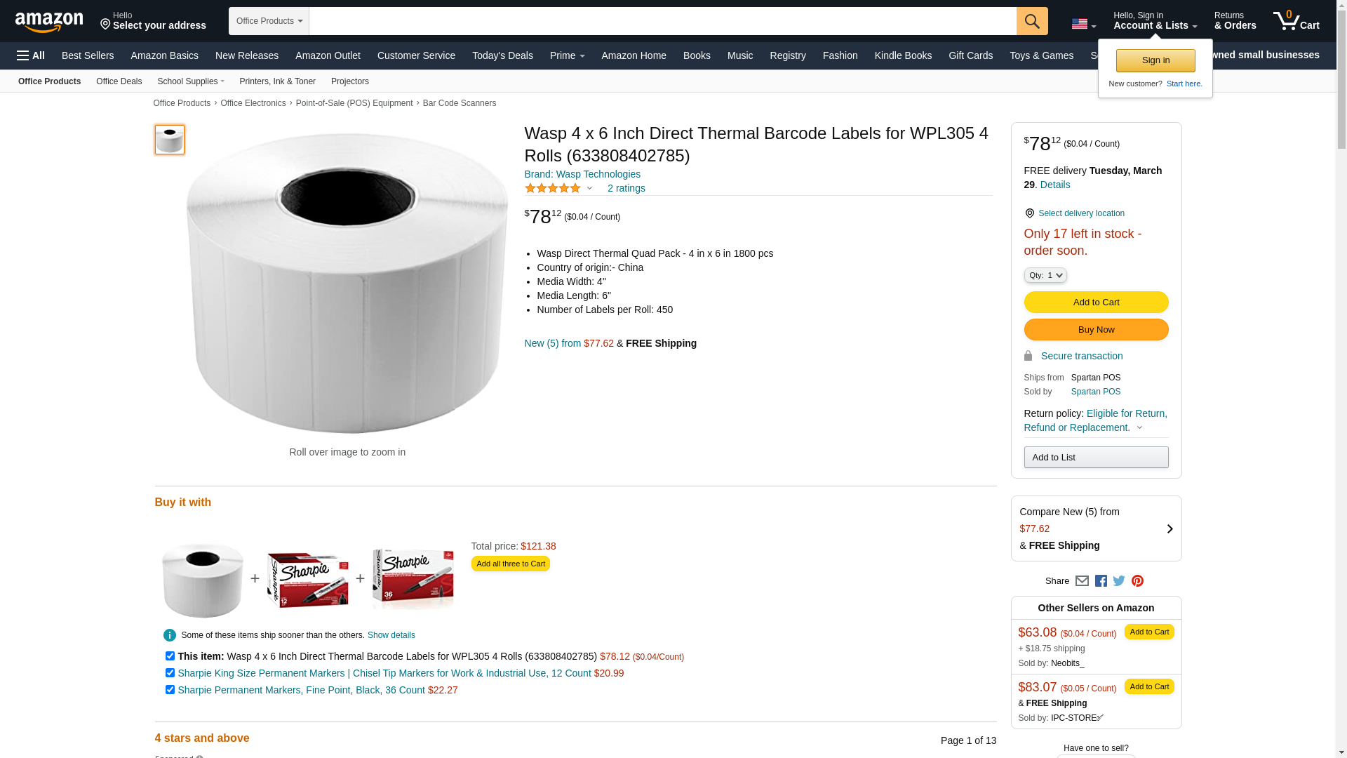 Wasp 4 x 6 Inch Direct Thermal Barcode Labels for WPL305 4 Rolls (633808402785)