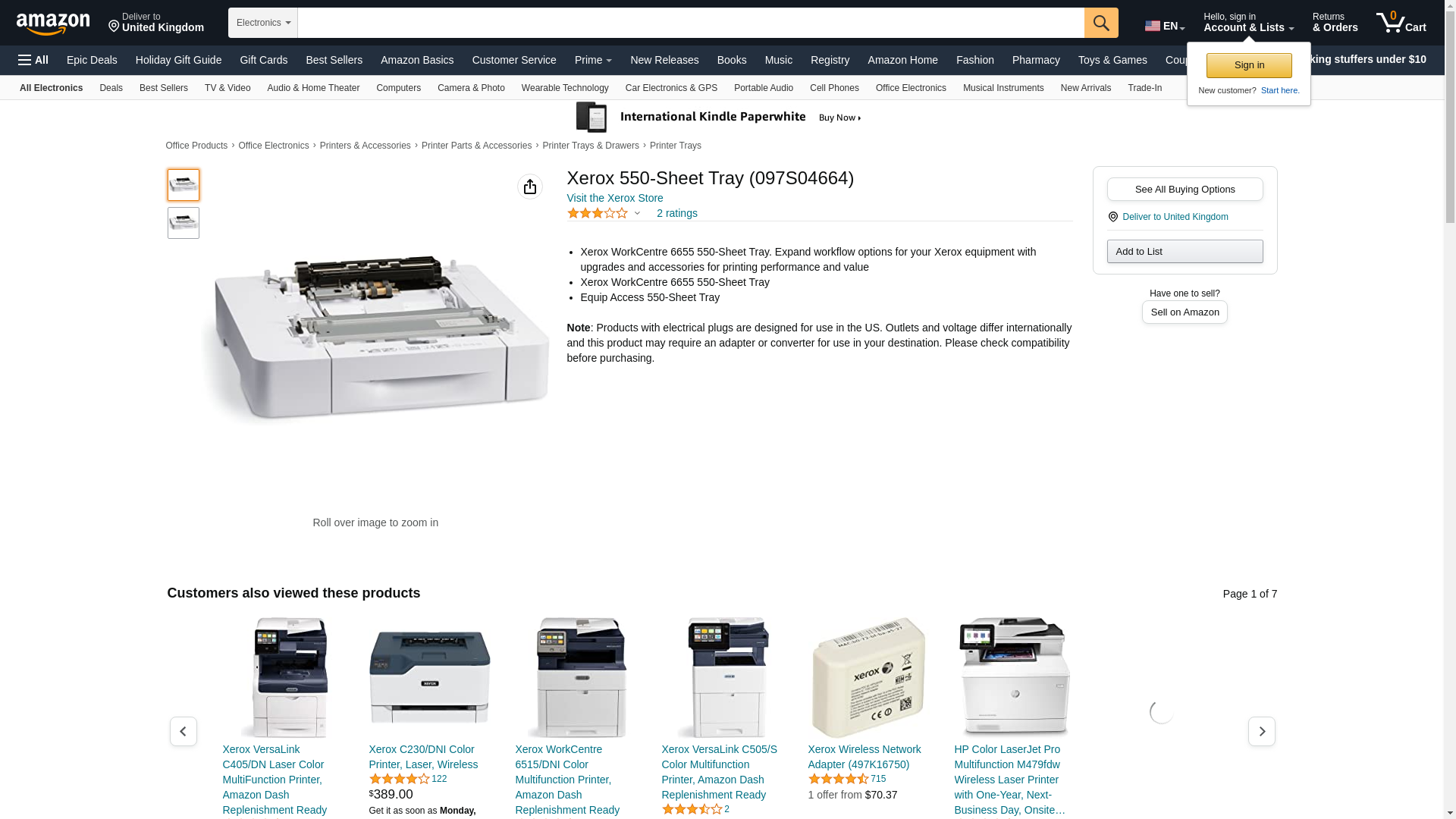 Xerox - T - 097S04664<br> Xerox - Media tray / feeder - 550 sheets in 1 tray(s) - for Xerox 6655V_XM, WorkCentre 6655, 6655/X, 6655/XM, 6655/YXM, 6655V_X