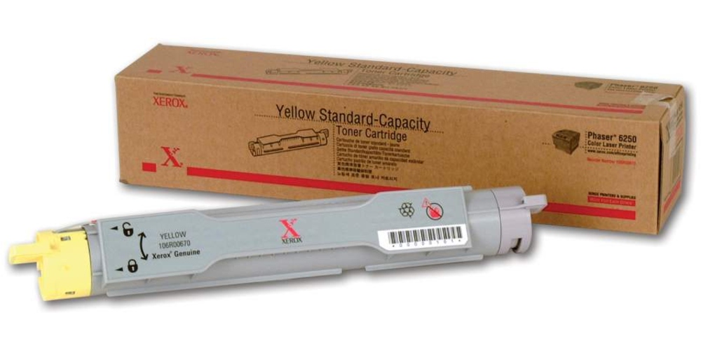 XEROX TONER CARTRIDGE,YELLOW,PHASER 6250. Toner Cartridge, Yellow, Standard Capacity, Phaser 6250, 106R00670 (Catalog Category: Printers & Print Supplies / Printer Consumables)