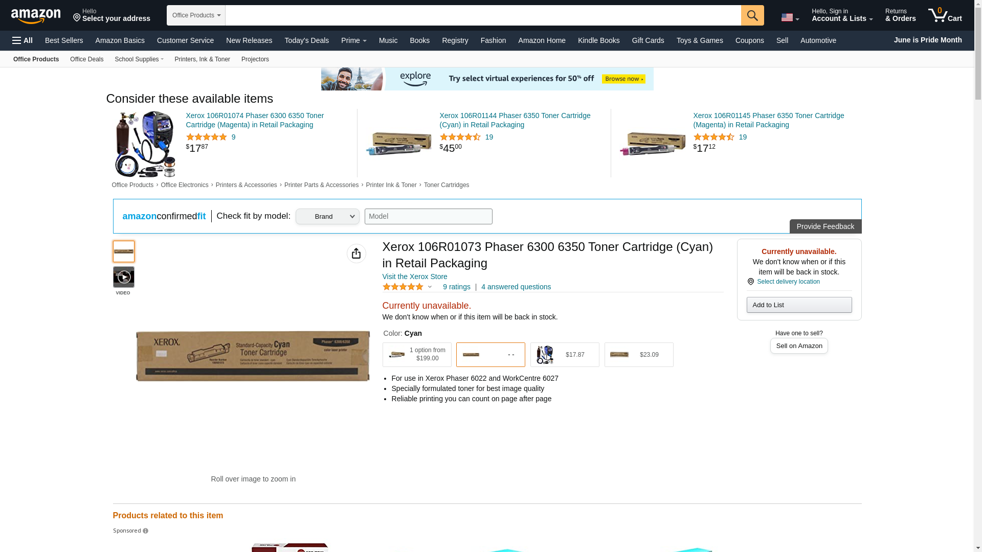 | Feature | Xerox 106R01073 OEM Toner - Phaser(R) 6300 6350 Cyan Toner 4000 Yield OEM |
