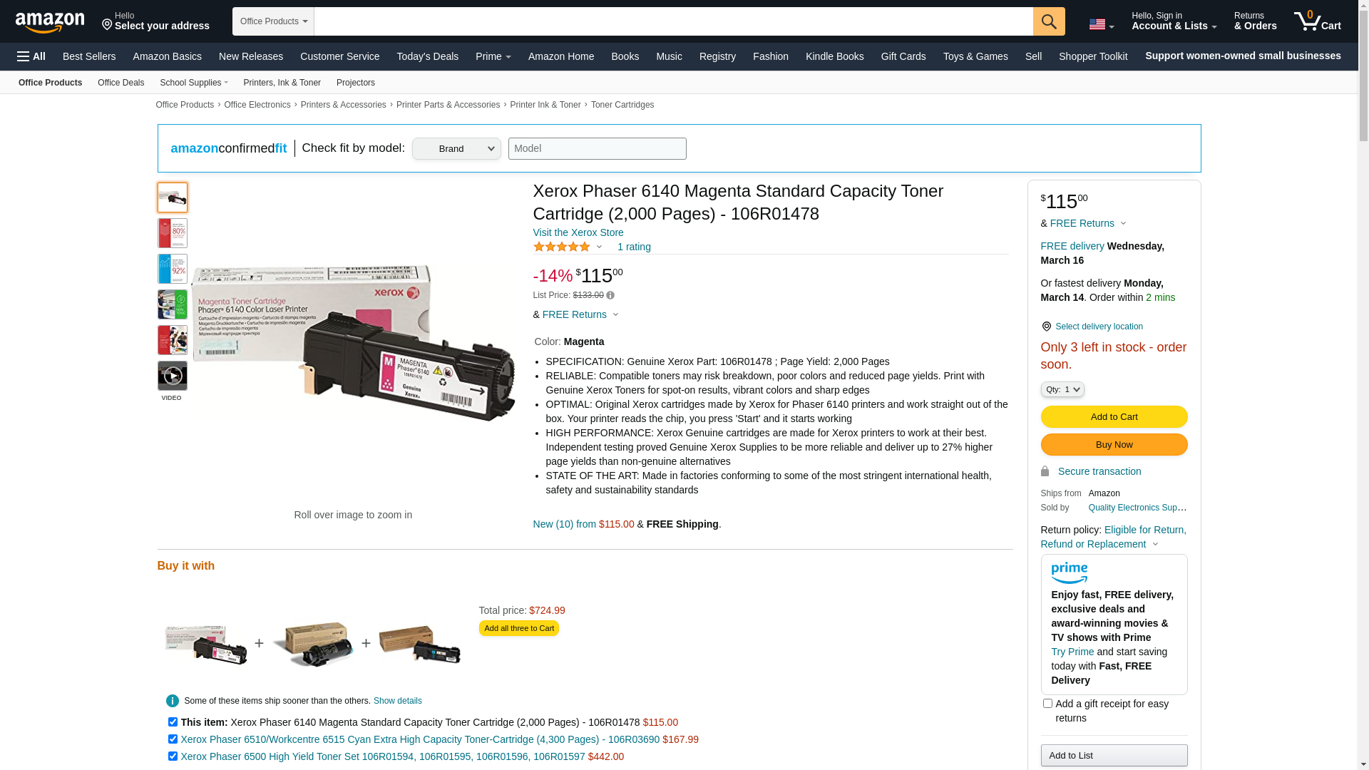 Print letters, presentations and other documents reliably by using this Xerox Phaser 6140 magenta toner cartridge. Ensure high-quality performance when taking on printing projects by using this toner cartridge. Made to work specifically with select Xerox printers, this toner cartridge offers consistent, reliable printing and helps minimize maintenance costs. This Xerox Phaser 6140 toner cartridge has a yield of up to 2,000 pages and its magenta color, lets your printing stand out boldly against white paper. Standard toner cartridge, up to 2000 pages. The package includes one magenta toner cartridge. Xerox toner cartridges offer excellent value and reliability. Compatible with: Xerox Phaser 6140DN, 6140N