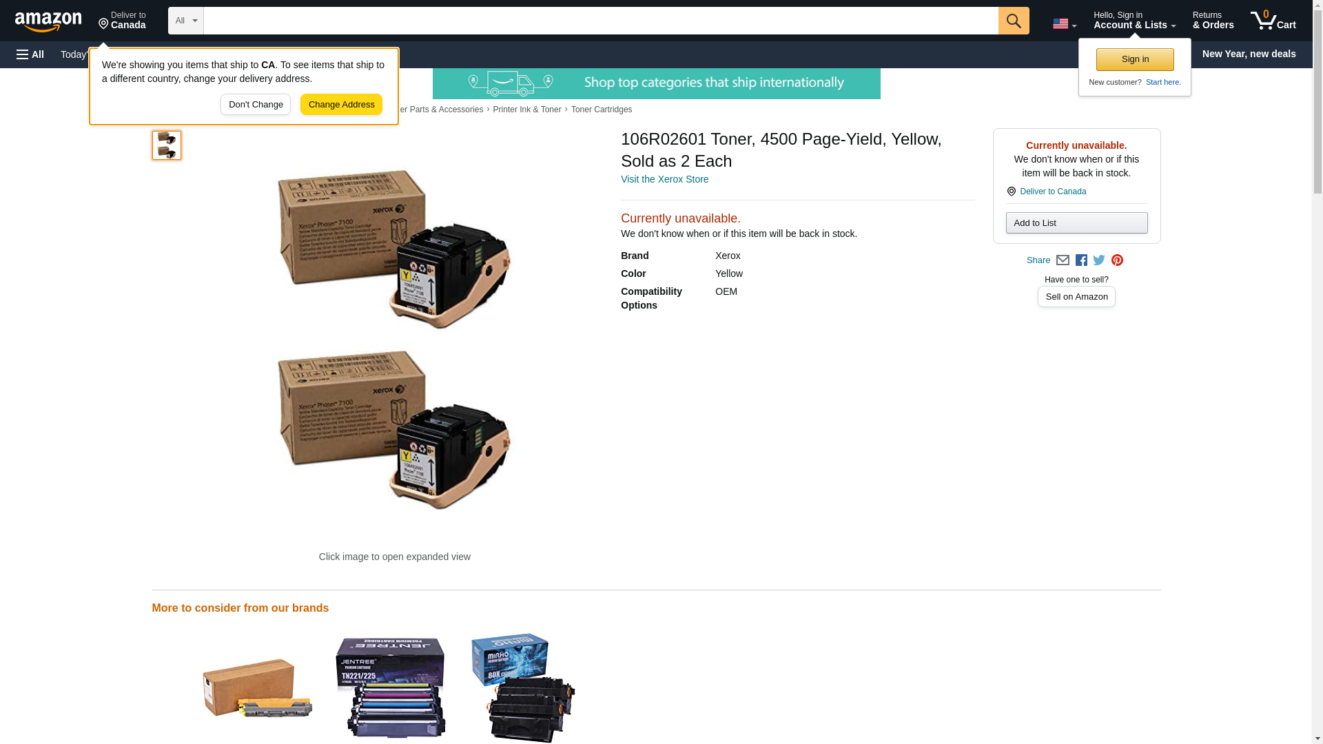106R02601 Toner, 4500 Page-Yield, Yellow, Sold as 2 Each