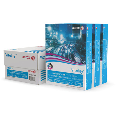 xerox Vitality Multipurpose Print Paper, 92 Bright, 20 lb Bond Weight, 8.5 x 11, White, 500 Sheets/Ream, 3 Reams/Carton