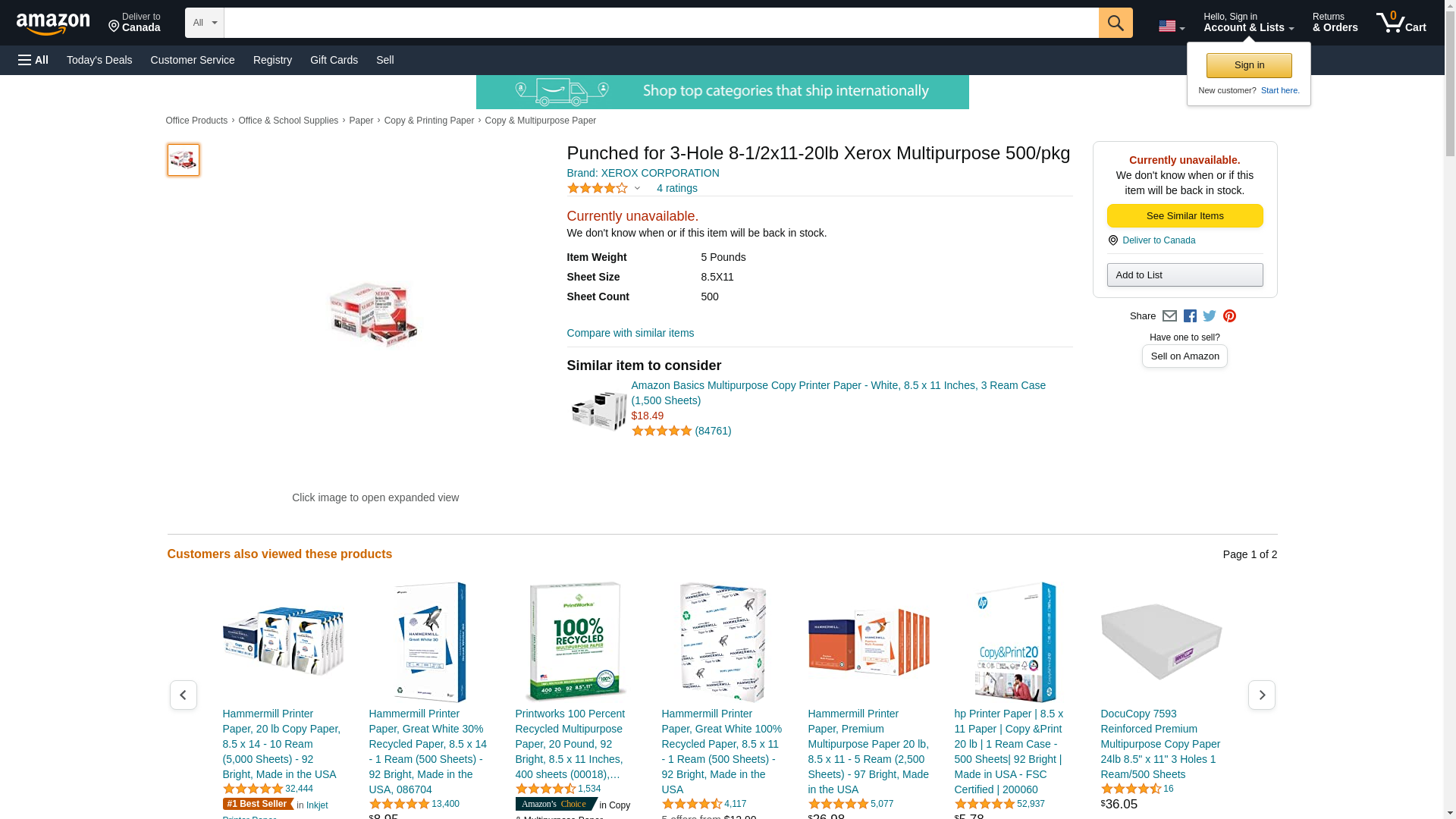 Punched for 3-Hole 8-1/2x11-20lb Xerox Multipurpose 500/pkg