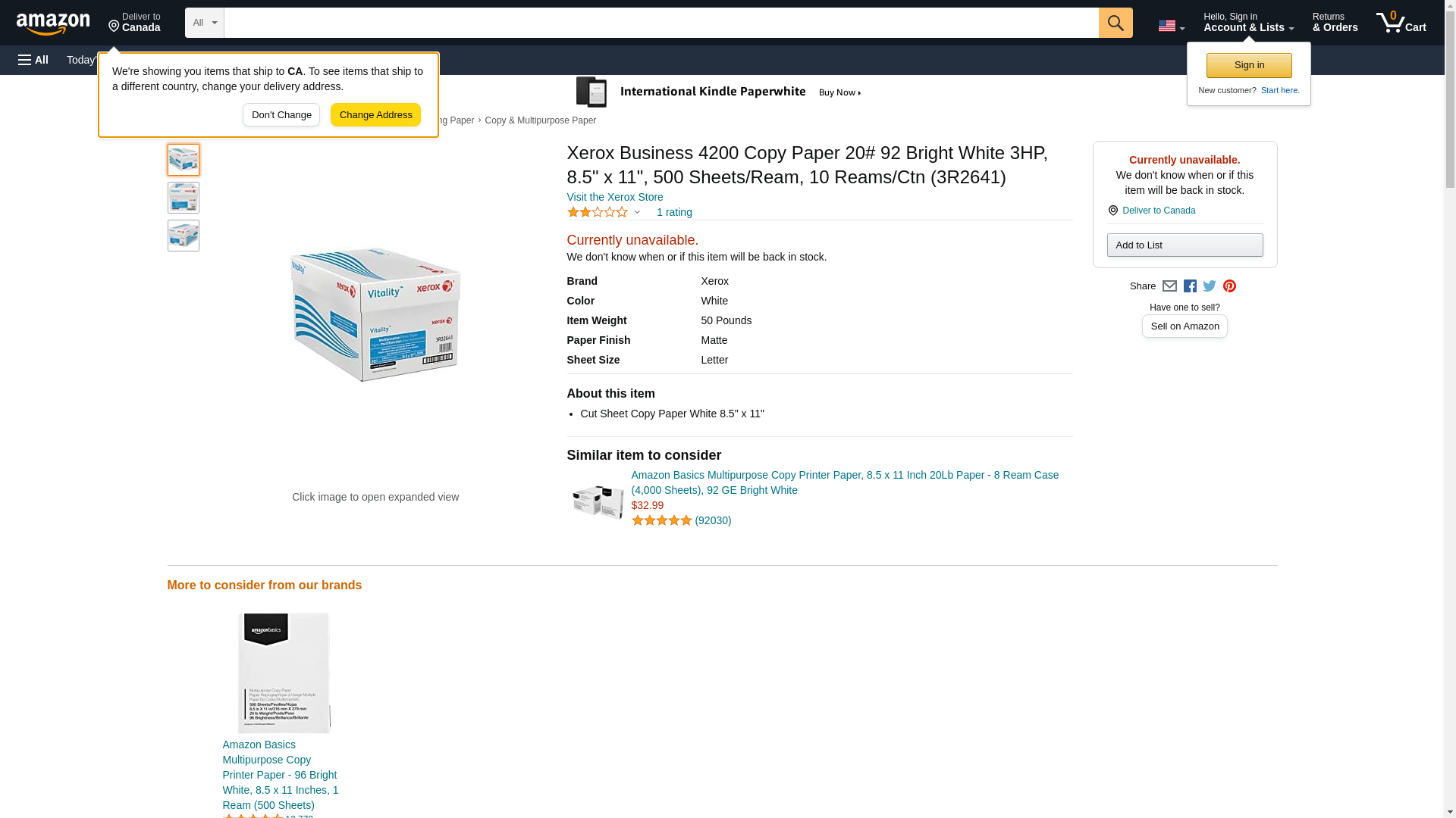 | Feature | Xerox Business 4200 Copy Paper 20# 92 Bright White 3HP (8.5" x 11") (500 Sheets/Ream) (10 Reams/Ctn) |