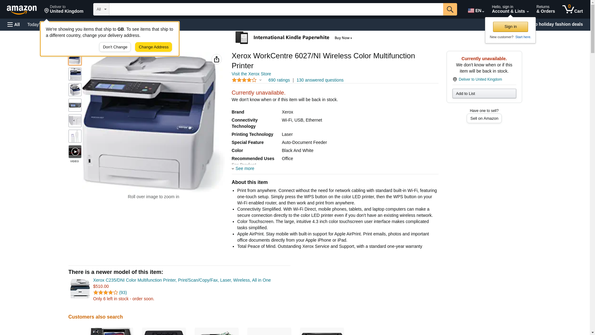 Xerox WorkCentre 6027/NI Wireless Color Multifunction Printer