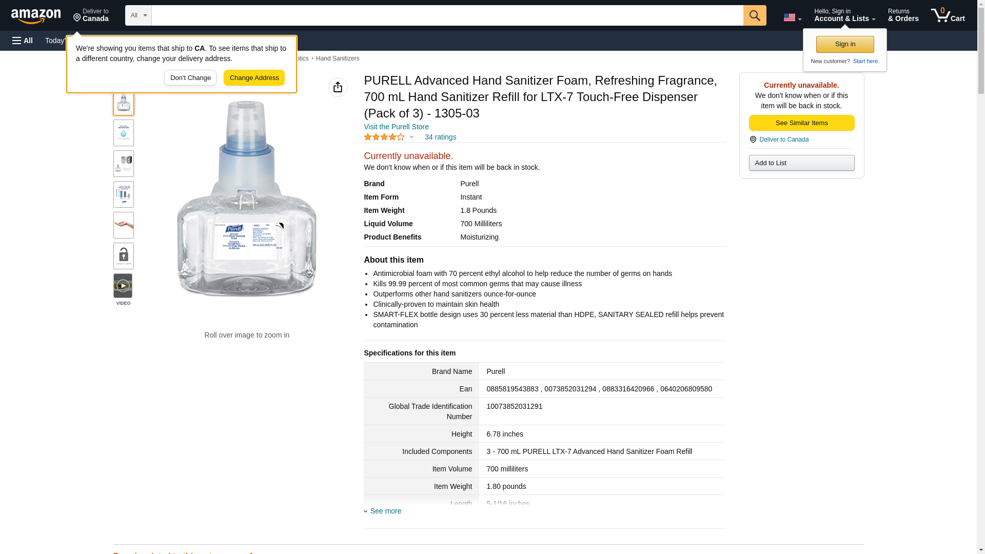 Purell 700mL, Cartridge, LTX™, PK 3 700mL 1305-03 - 1 Each