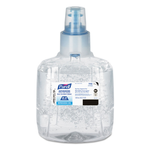 PURELL Advanced E3-Rated Instant Hand Sanitizer Gel, Fragrance-Free,1200 mL Refill, 2/Carton (190802)