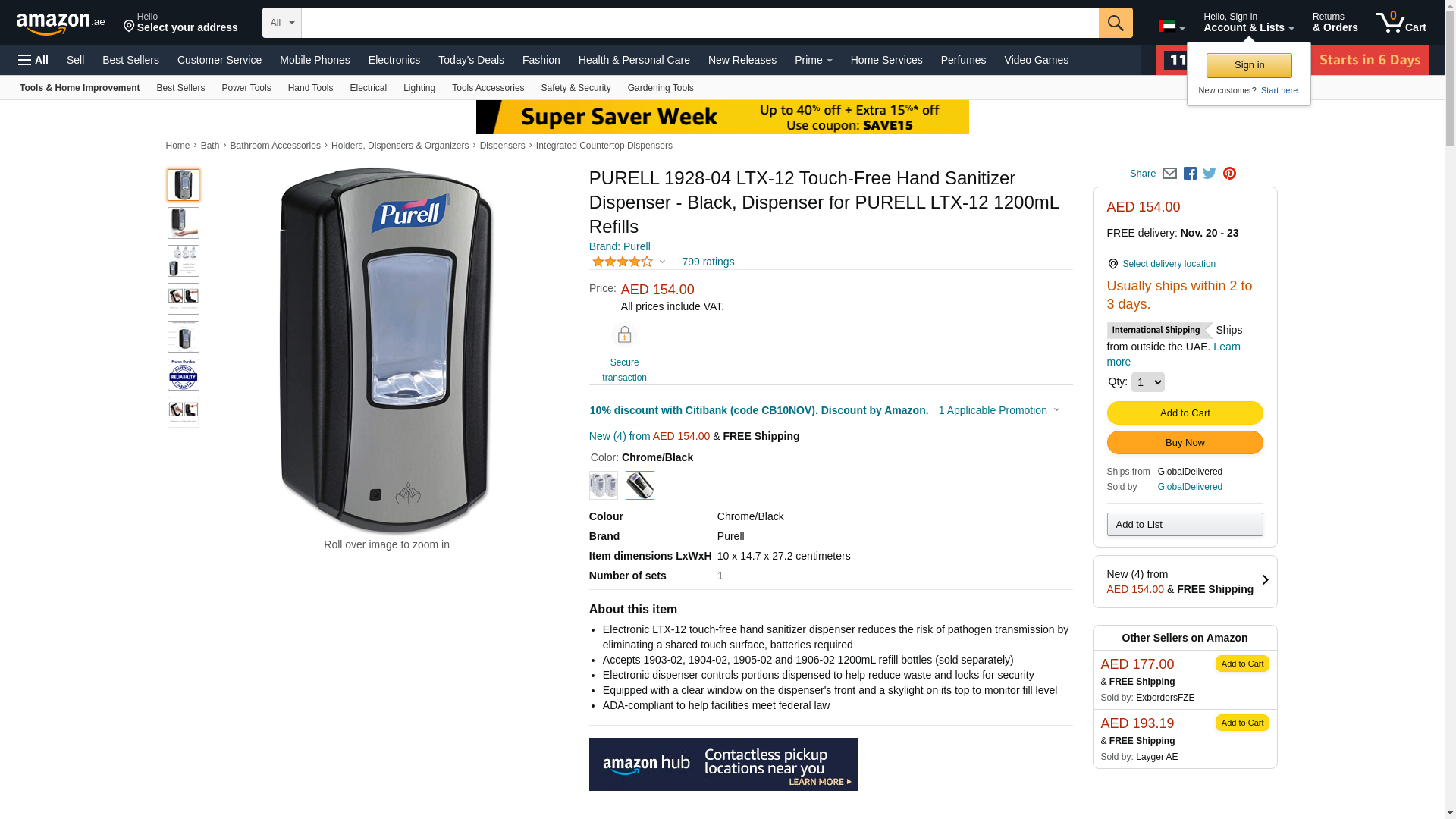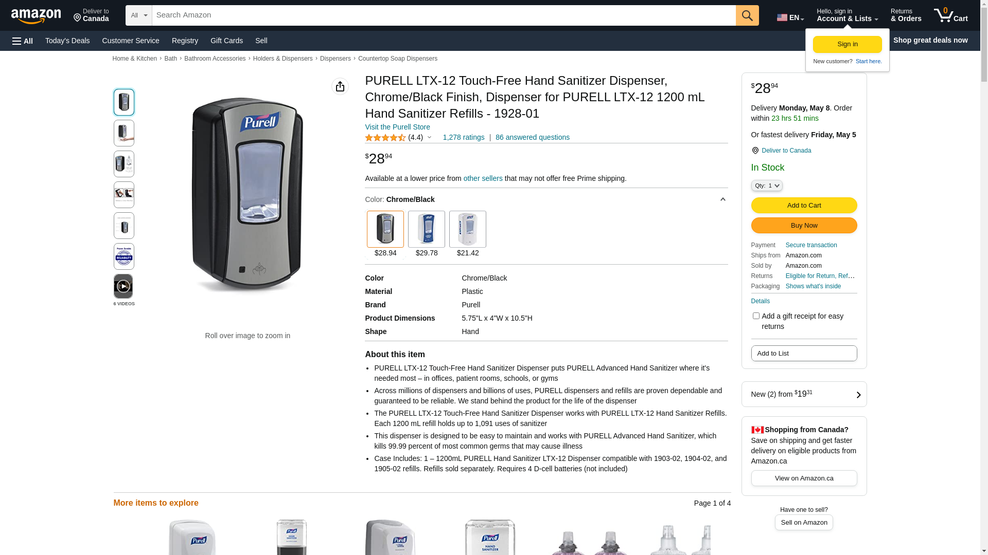 PURELL LTX-12 Touch-Free Hand Sanitizer Dispenser, Chrome/Black, for 1200 mL PURELL LTX-12 Hand Sanitizer Refills (Pack of 1) - 1928-04