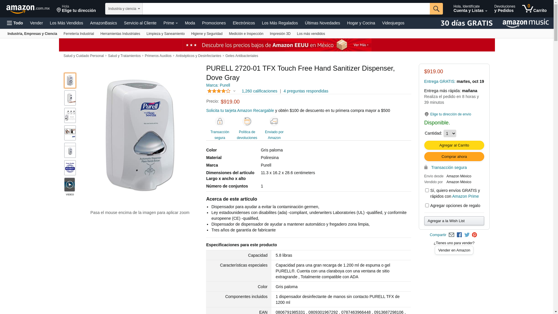 - Case Pack Includes: 1 - 1200 mL PURELL TFX Touch-Free Dove Grey Soap Dispenser, adhesive mounting tape. Dispenser requires 3 "C" Alkaline batteries that are NOT included. Dimensions are: 10.58 h x 4.09 w x 6.0.