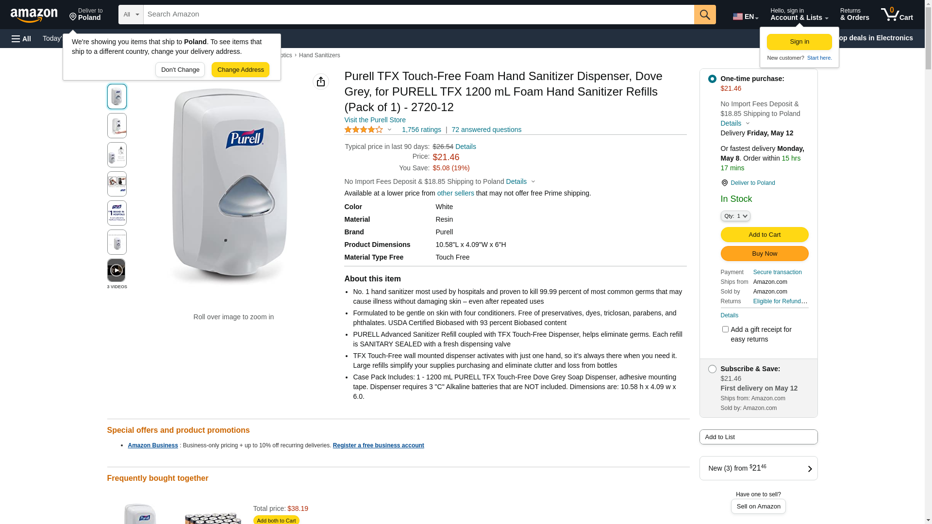 Purell 2720-12, Touch Free Hand Sanitizer Dispenser