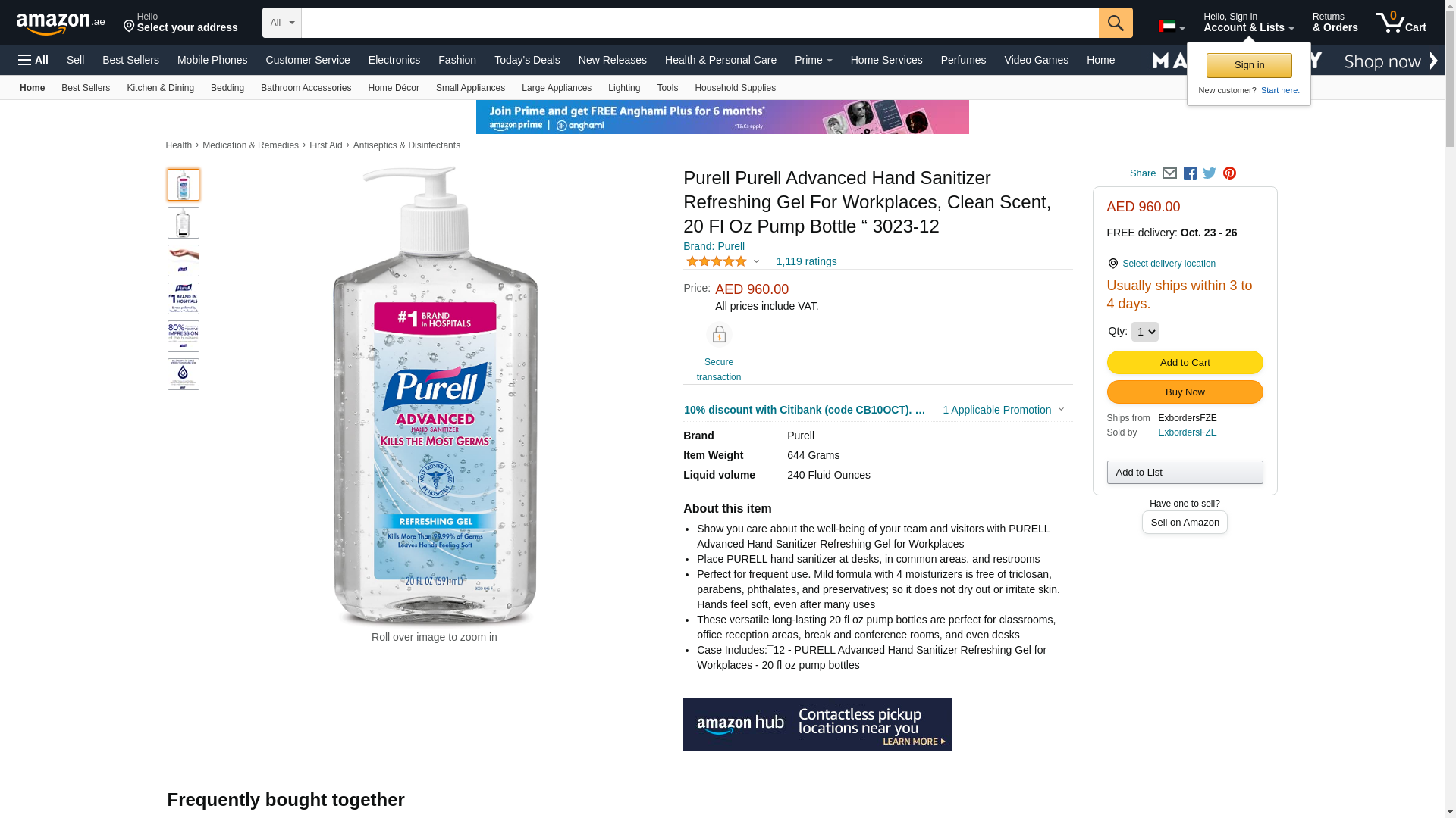 Purell Instant Hand Sanitizer, 20 Oz. Pump Bottles, Pack of 12