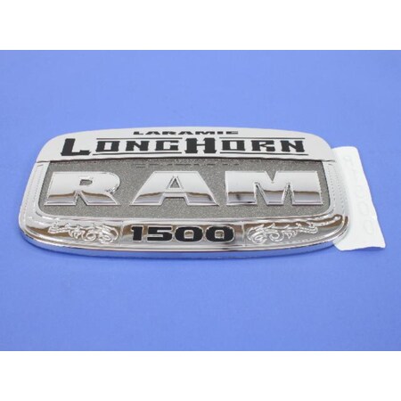 Replacement for 1500 ST Quad Cab / Crew Cab 2014, "Laramie LongHorn 1500" Nameplate Right Side Front Door Emblem (68082666AA) by Mopar, 1 Piece.