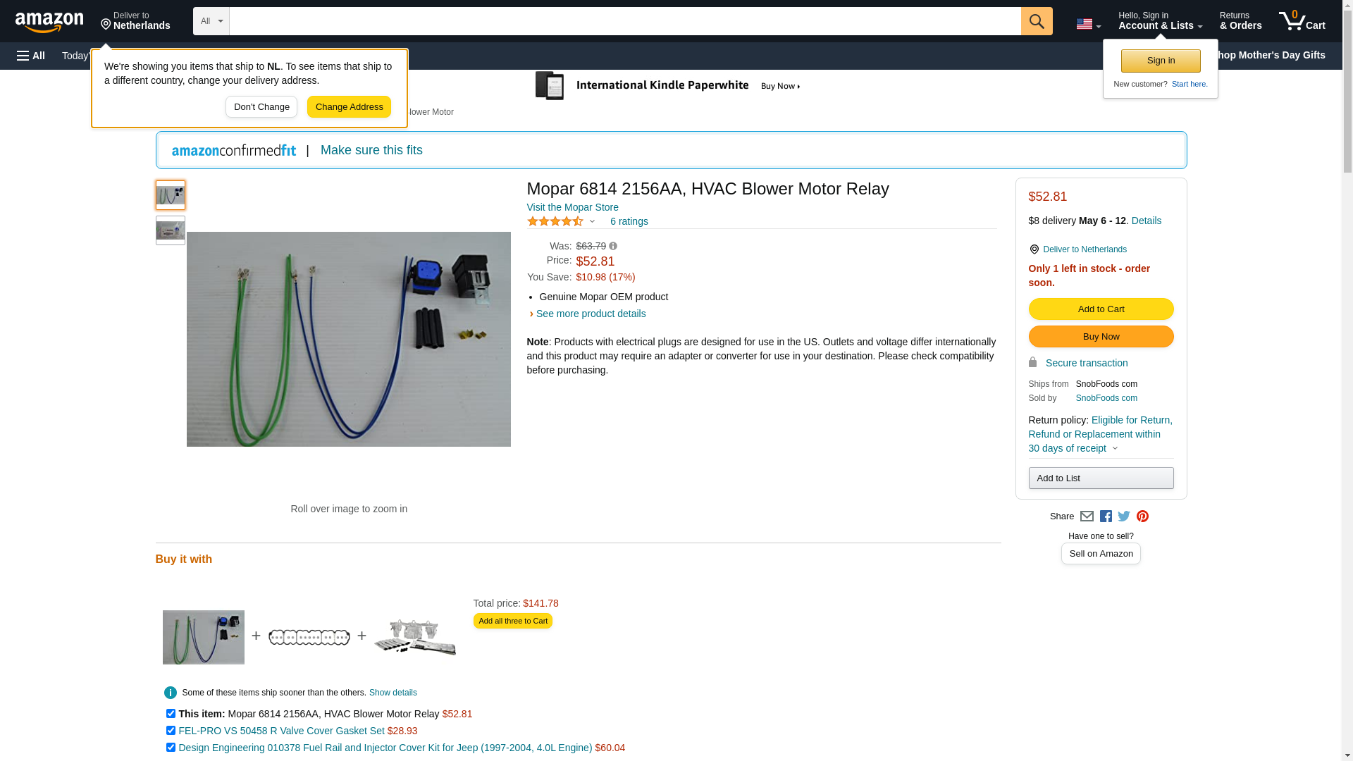 | StockWise Auto | MOP-68142156AA | 1 | 1 | 1 | 1 @ $43.01 |