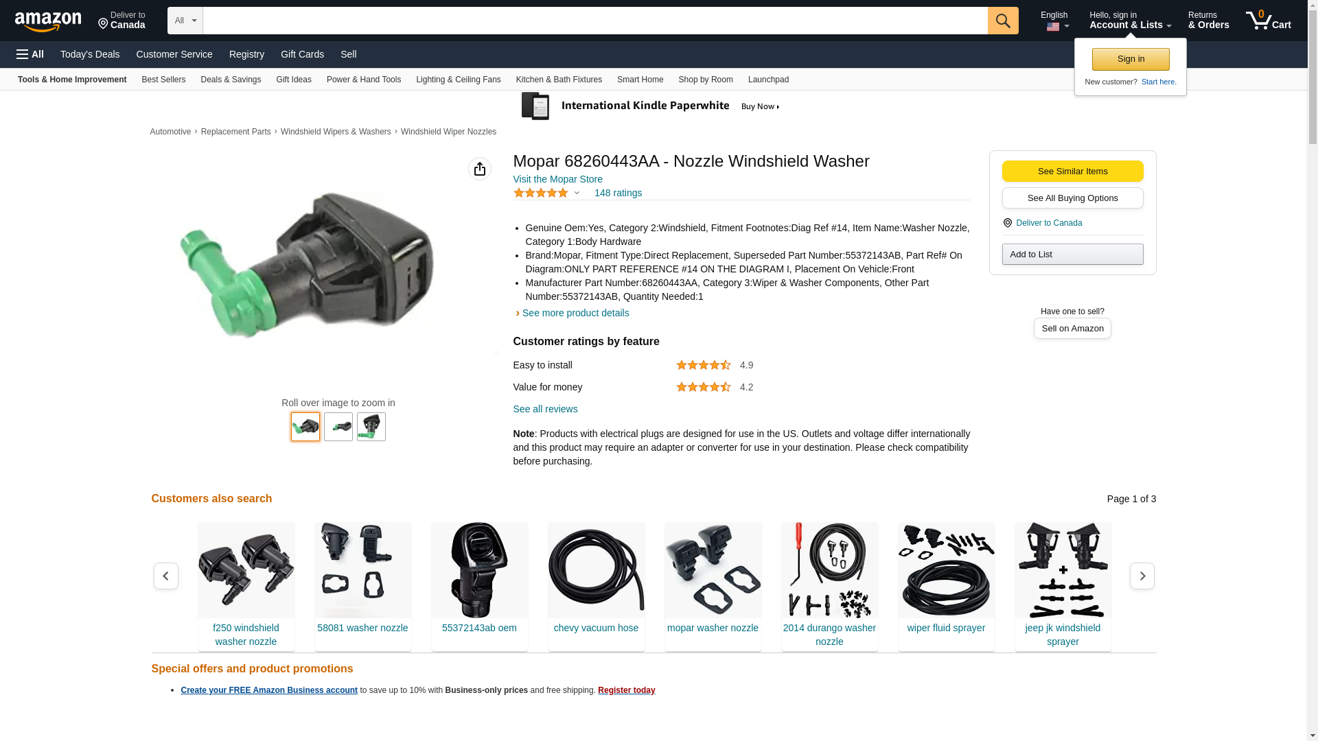 | StockWise Auto | MR-68260443AA | 1 | 21 | 1 | 1 @ $25.17 |