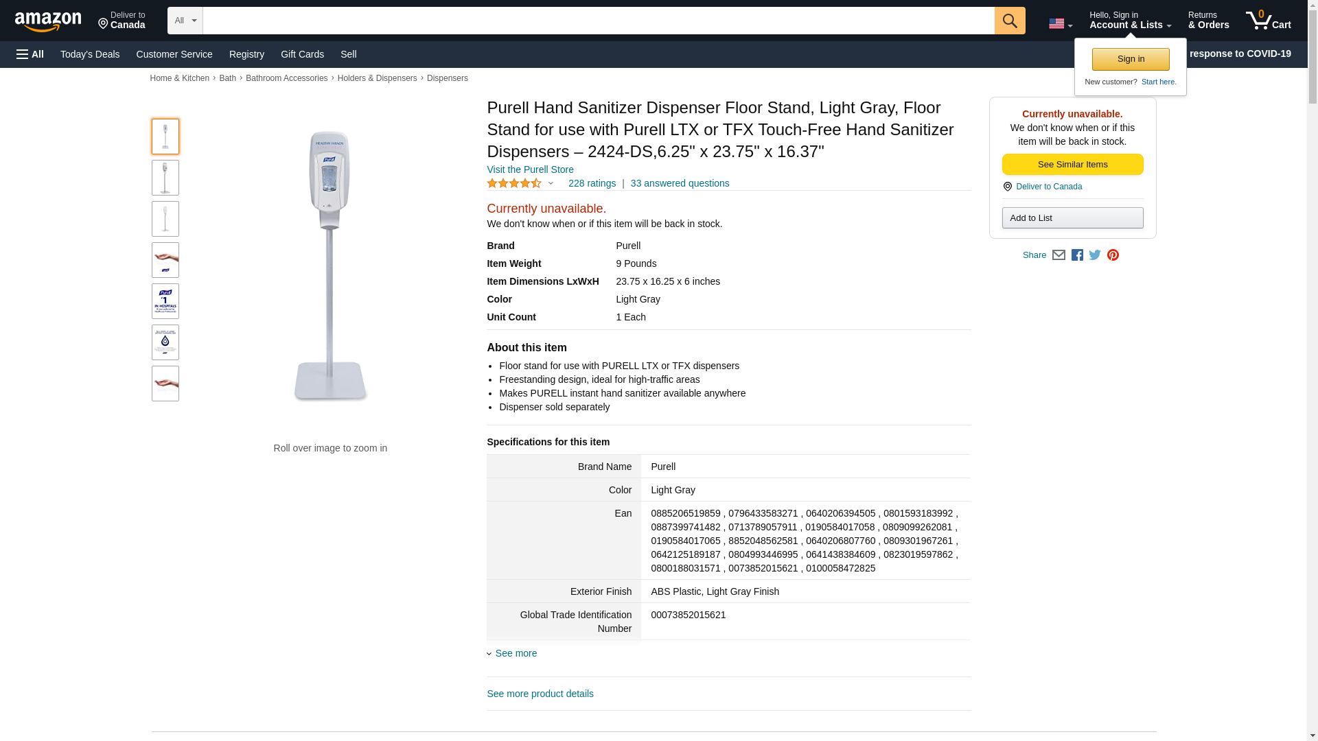 Purell Products - Purell - Floor Stand for TFX Touch Free Instant Hand Sanitizing Dispenser, Light Gray - Sold As 1 Each - Ideal for high-traffic areas. - Encourages hand hygiene. - Built-in shield keeps surrounding area clean. - Easy to assemble. - For use with PURELL TFX Touch-Free Dispenser (GOJ-2720-12, sold separately).