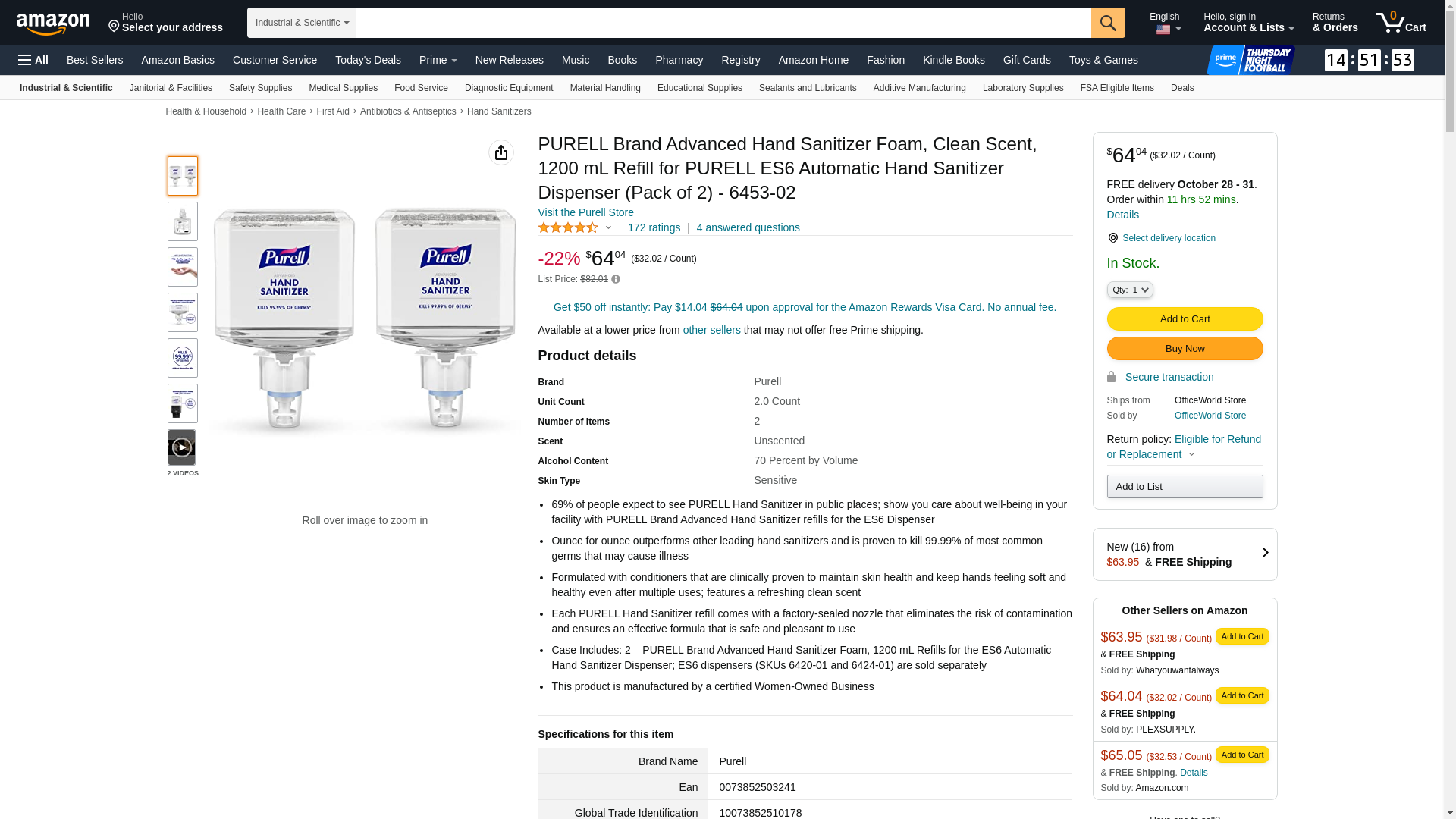 - Case Includes: 2 – PURELL Brand Advanced Hand Sanitizer Foam, 1200 mL Refills for the ES6 Automatic Hand Sanitizer Dispenser; ES6 dispensers (SKUs 6420-01 and 6424-01) are sold separately
