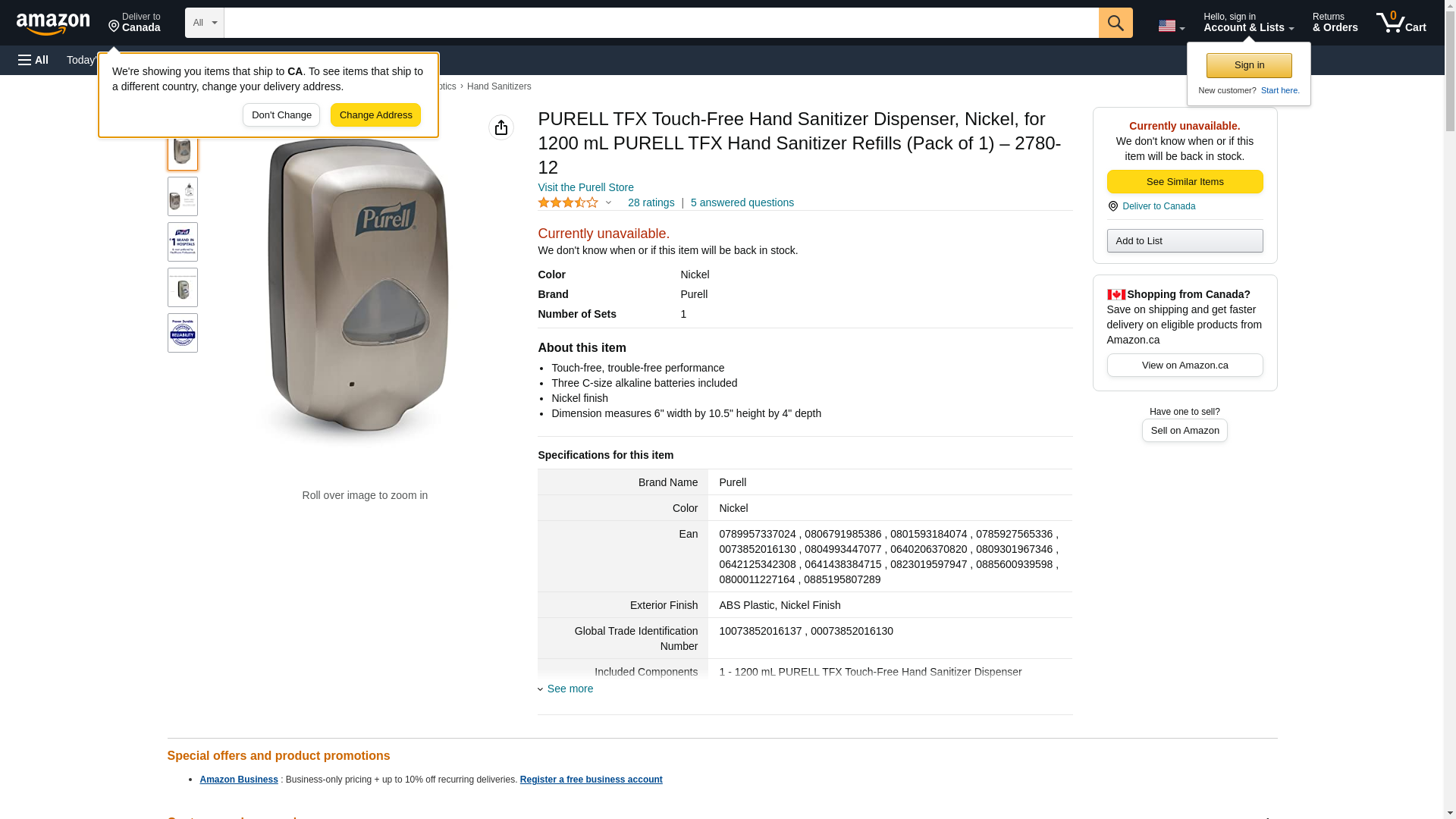 PURELL TFX Touch-Free Hand Sanitizer Dispenser, Nickel, for 1200 mL PURELL TFX Hand Sanitizer Refills (Pack of 1) – 2780-12