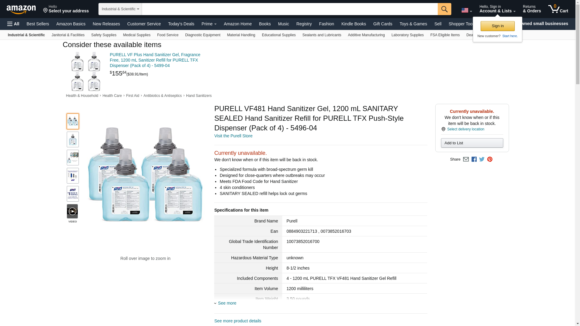 | Feature | Price For: Each Standards: FDA Package Type: Bottle Item: Hand Sanitizer Refill Size: 1200mL Uses Dispenser: Mfr. No. 2720 Formula: Advanced Efficacy Gel Form: Gel Country of Origin (subject to change): United States |