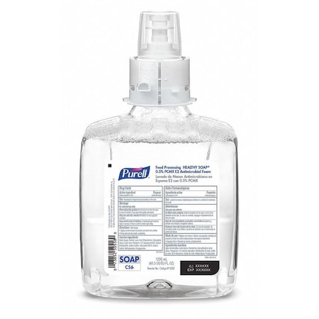 Supply your employees with this Purell Food Processing Healthy Soap Foam Handwash to effectively wash and sanitize hands. Specially formulated for the food processing industry, this soap removes fats, oils and other soils. Provides a 1-step handwashing and sanitizing soap for the food processing industry. Specially formulated to remove fats, oils and other food processing soils. Sanitary Sealed refill helps prevent contamination. Each refill is equipped with a fresh dispensing valve. Compatible with the Purell CS6 Touch-Free Soap Dispensers (sold separately). Unscented soap is free of dyes. 0.5% PCMX formula is designed to kill 99.99% of , including the most common food-borne pathogens. Certified Kosher. Listed with NSF International as an E2 for use in all departments of USDA-regulated food processing environments