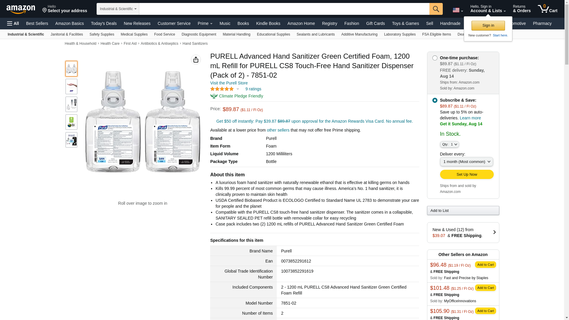 - Case Includes: 2 – PURELL Advanced Hand Sanitizer Green Certified Foam refills, Fragrance Free, 1200 mL Refills for the CS8 Automatic Soap Dispenser; CS8 dispensers (7824-01 and 7820-01) are sold separately