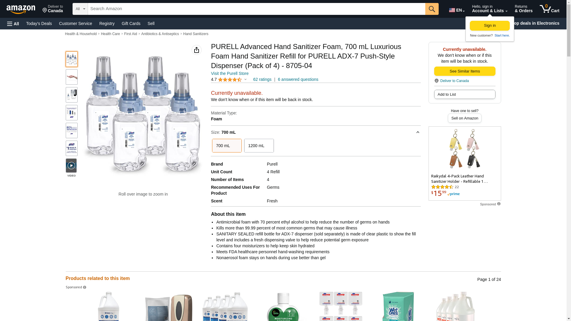 Purell Advanced Hand Sanitizer Foam, 700 mL Luxurious Foam Hand Sanitizer Refill ADX-7 Push-Style Dispenser (Pack of 4) - 8705-04