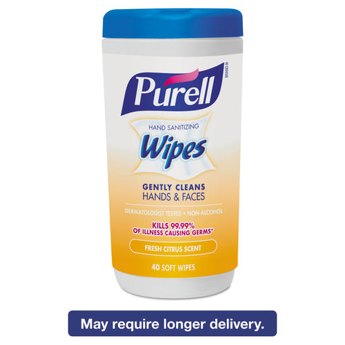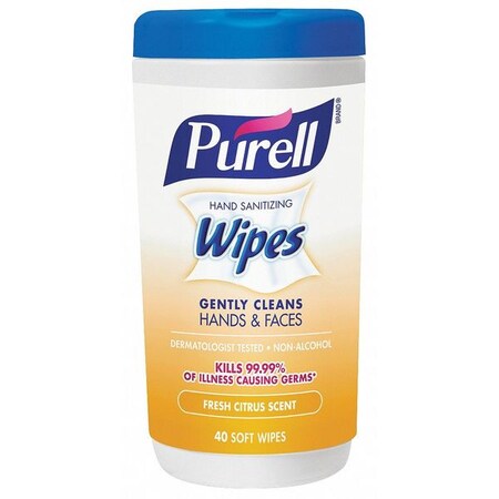 PURELL Hand Sanitizing Wipes, 5. 7 x 7 1/2, Fresh Citrus Scent, 40/Canister, 6/Crtn