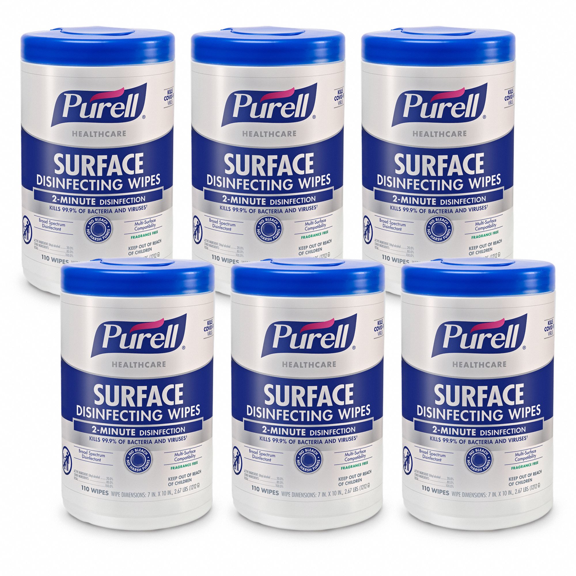 - Case Includes: 6 – PURELL Healthcare Surface Disinfecting Wipes, 110 Count Canisters, 7”x 10” Wipes