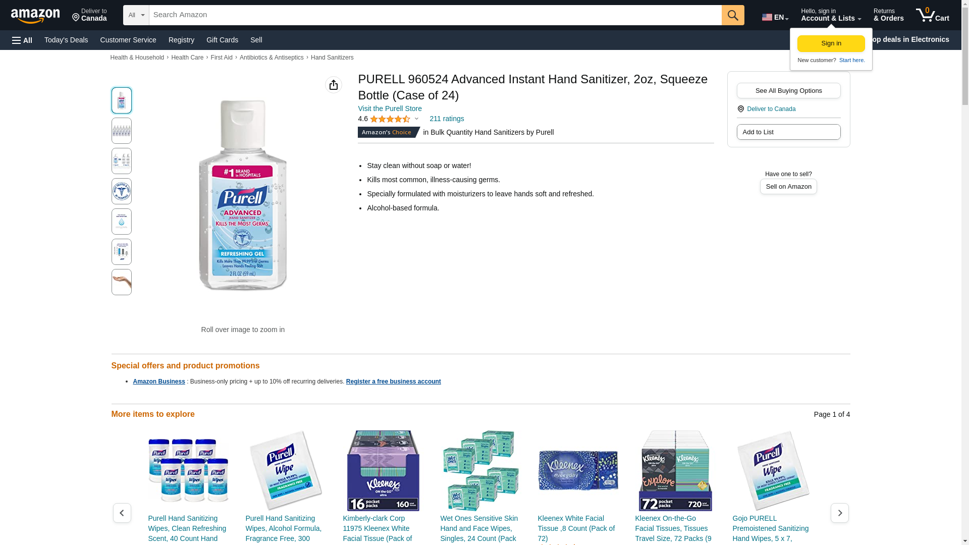 | Feature | This Listing is for Purell Advanced Instant Hand Sanitizer 2 OZ 24 Bottle / Case Qty |