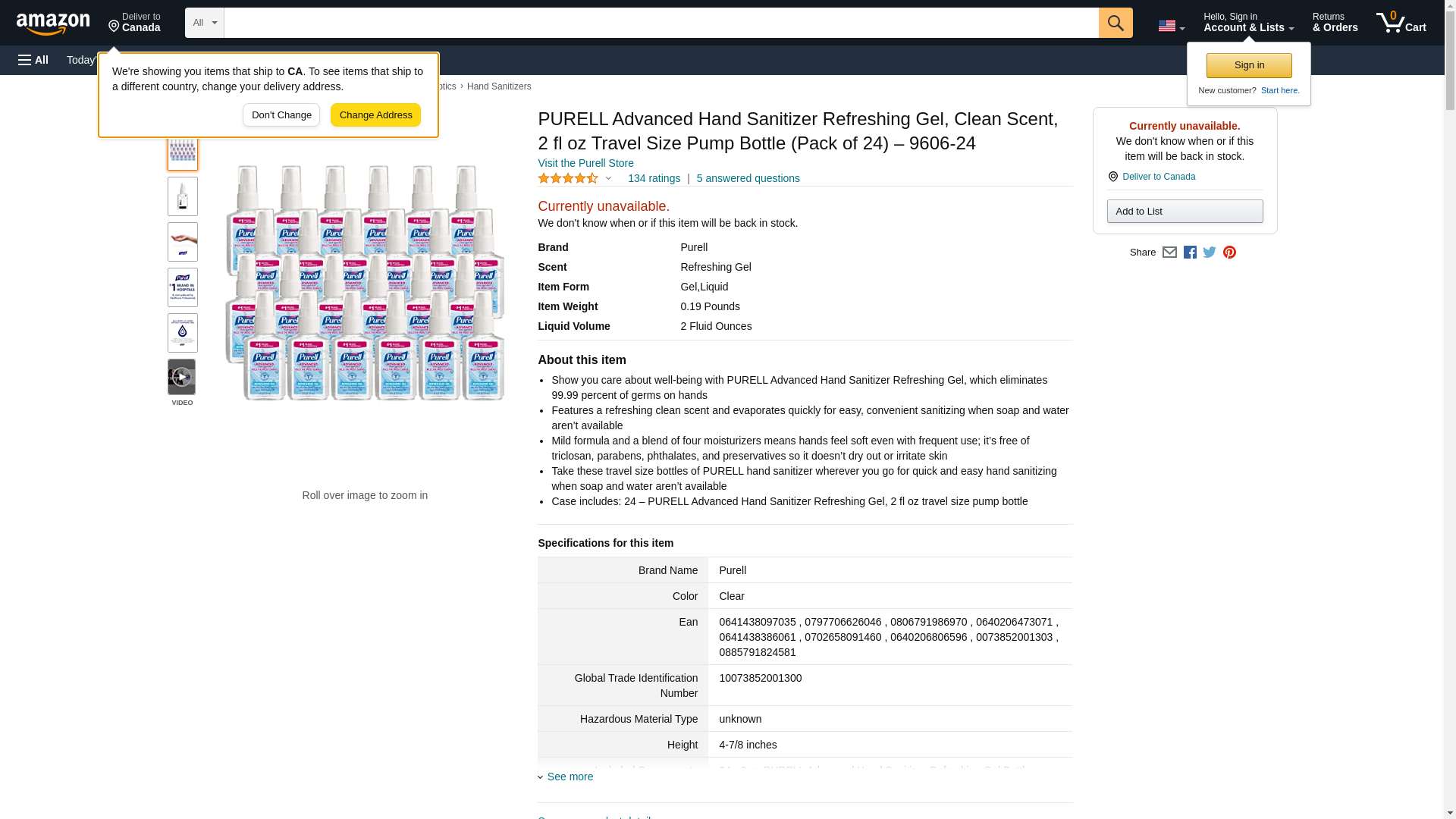 | Feature | This Listing is for Purell Advanced Instant Hand Sanitizer 2OZ 24 Each / Case Qty |
