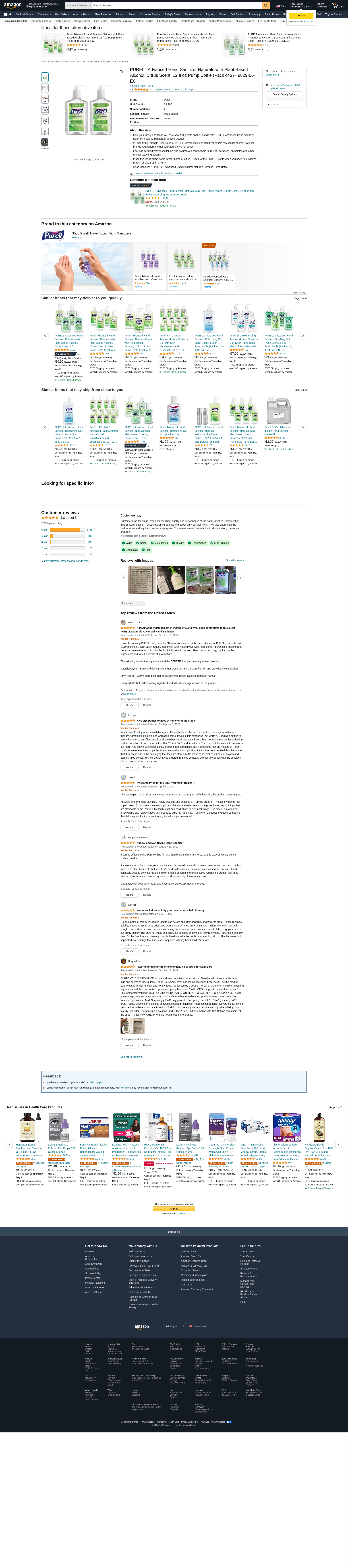 - Case includes: 2 - PURELL Advanced Hand Sanitizer Naturals- 12 fl oz Pump Bottle