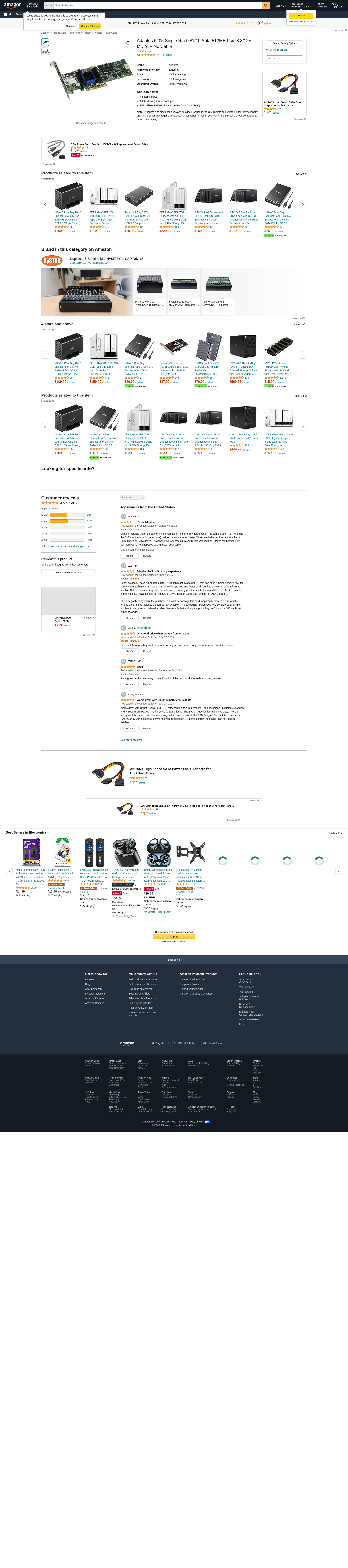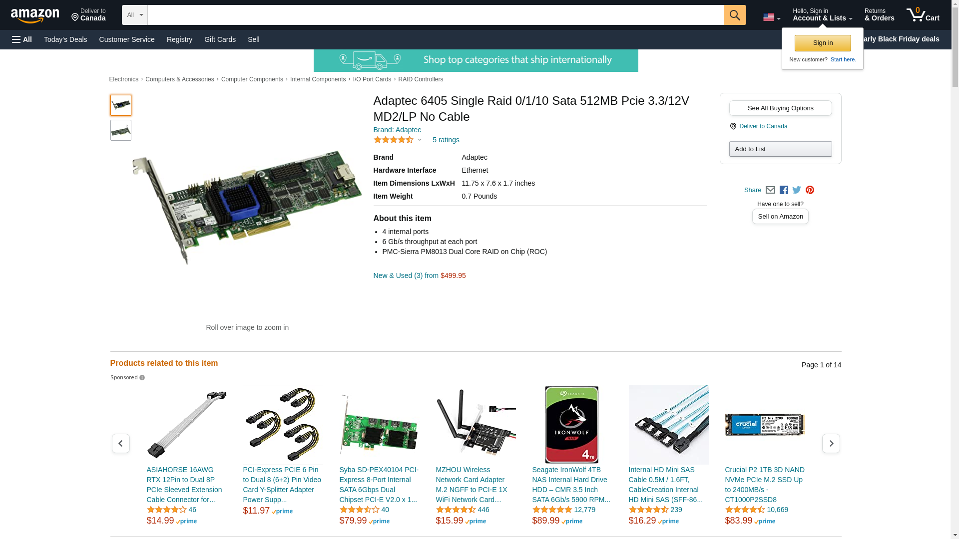 | Feature | Adaptec 2270000-R RAID 6405 Single RAID 0/1/10 SATA 512MB PCI Express Controller Card |